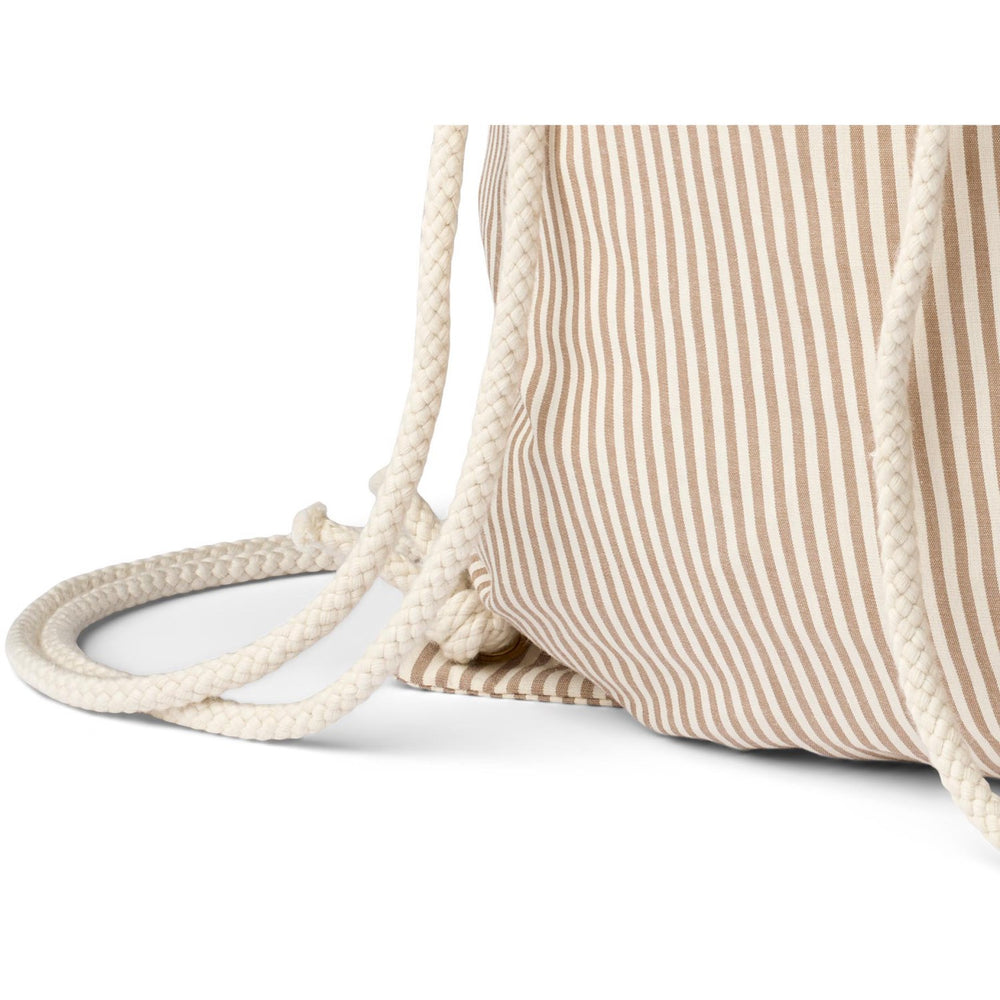 Pack a punch of play with Wheat's Cappucino Stripe Gym Bag Yuna, ideal for the little adventurers! This stylish gym bag features classic cappuccino stripes and is crafted from soft, 100% organic cotton. Its double shoulder straps and secure drawstring closure make it comfortable and easy for kids to carry whether they're off to a sports practice, day trip, or storing their treasures. Let your child stride into their day with this lightweight yet resilient companion, tailored to accompany them everywhere from playgrounds to classrooms. An adorable yet functional pick for the active and stylish youngster!