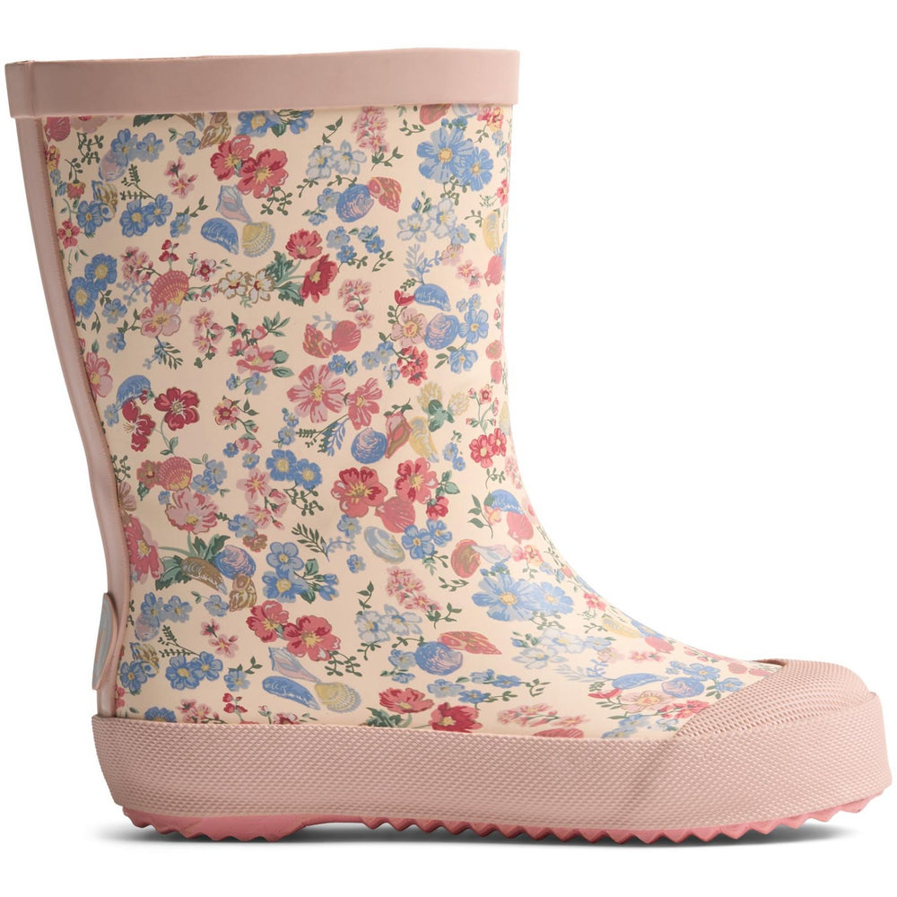 Brighten up rainy days with Wheat's Wheat Flowers And Seashells Muddy Rain Boots, expertly designed for your little ones. Crafted from eco-friendly natural rubber, these boots strike the perfect balance between sustainability and style. Featuring high shafts and outsoles that extend over the toes, they provide extra protection to keep little feet safe and dry. The boot's casing is adorned with picturesque wheat signature prints, adding a touch of charm to the protective footwear.