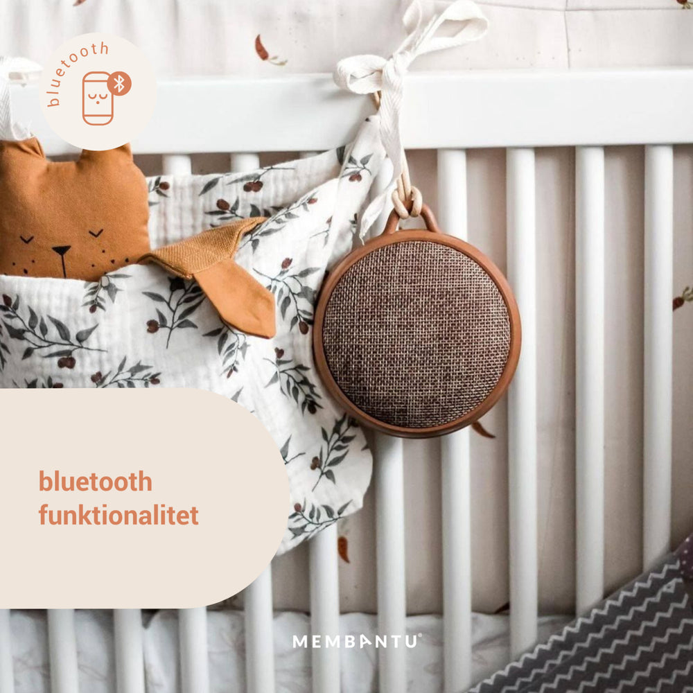 Introduce your little one to the soothing world of sounds with the MEMBANTU Wheat White Noise Speaker - Echo01. Designed with organic, bio-based materials and a handy cotton strap, this Bluetooth-enabled white noise speaker features 10 pre-programmed sounds to calm and comfort your child. Whether hanging in the nursery or traveling with you, its versatility and ease of use, including up to 10 hours of playtime on a full charge, make it an indispensable companion for both rest and play. Perfect for stimulating your child’s auditory senses while ensuring safety and comfort.