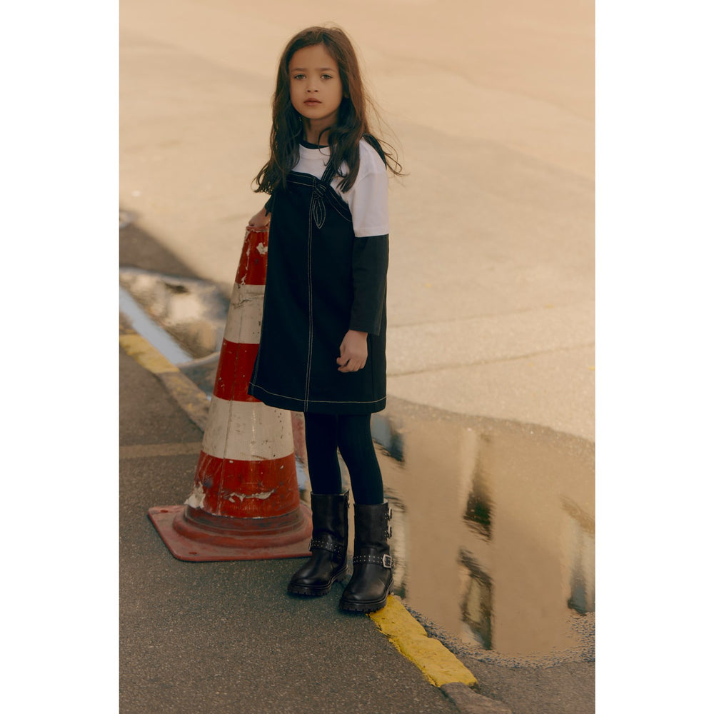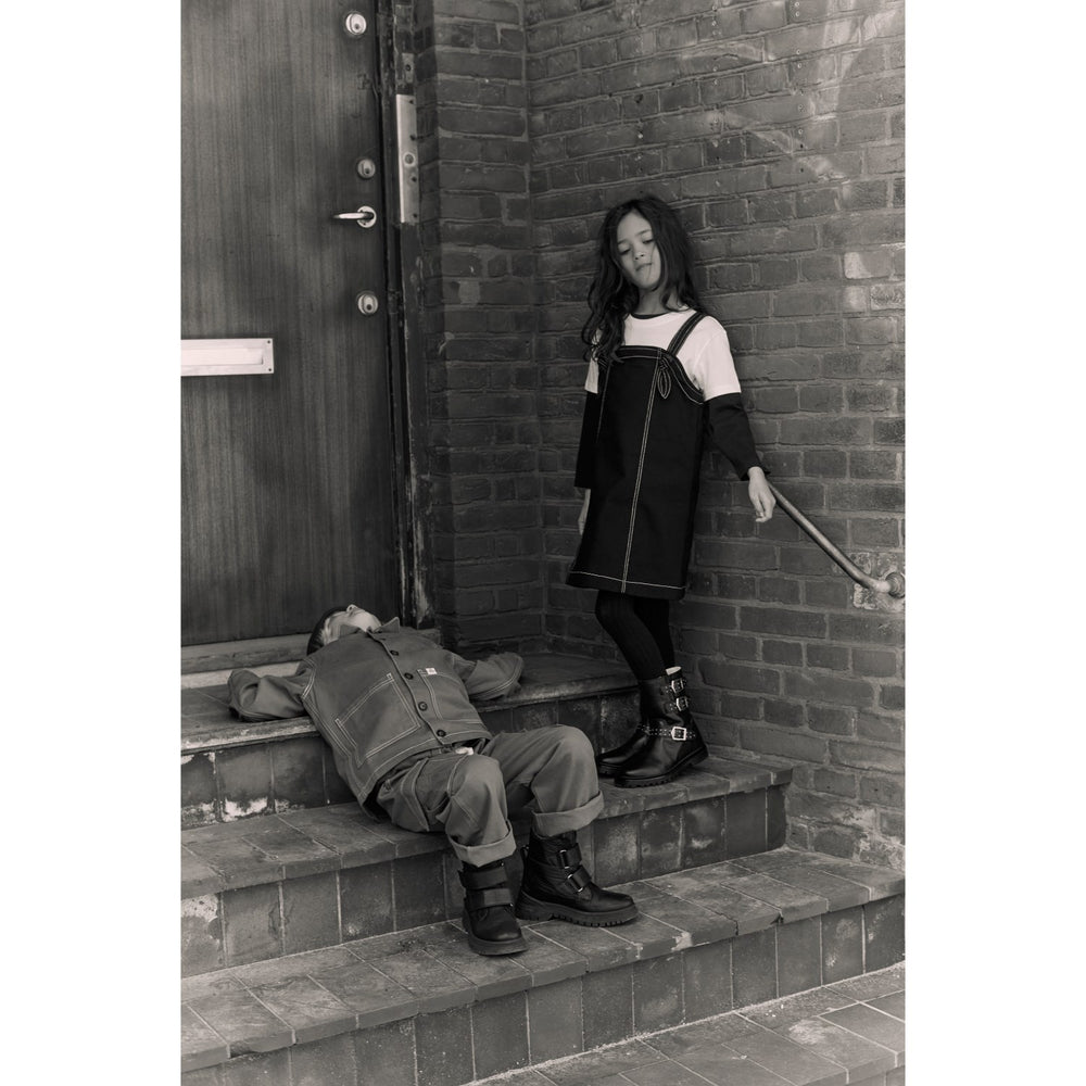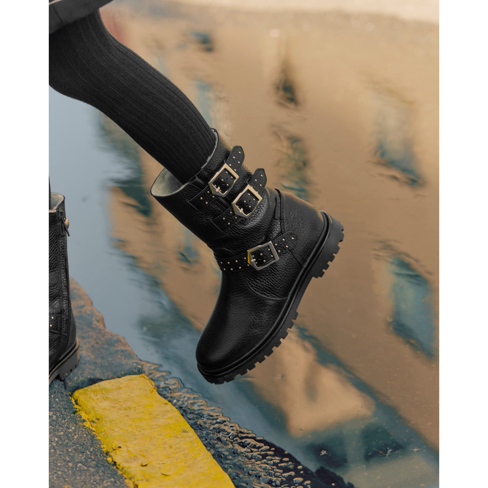 Introducing the Angulus Black Tex Boot, a perfect blend of style and function for your child's winter adventures! Crafted from natural, breathable leather and featuring a PFAS-free TEX membrane, this boot ensures your child's feet stay warm and dry. With its biker-inspired buckle details and riveted design, it offers a chic look while the round toe and mid-high shaft with zipper and snap button closure add to its practicality. The padded insole, breathable, chrome-free wool lining, and fixed heel cap enhance comfort and support. Its light black rubber sole with a track pattern provides excellent traction, making these boots ideal for various outdoor activities. Designed in Denmark and handmade with love in Portugal, these boots not only embody quality craftsmanship but also prioritize your child's comfort and safety. For a perfect fit, remember to measure your child’s foot and consider a growth allowance of 1-1.5 cm to ensure lasting wear.