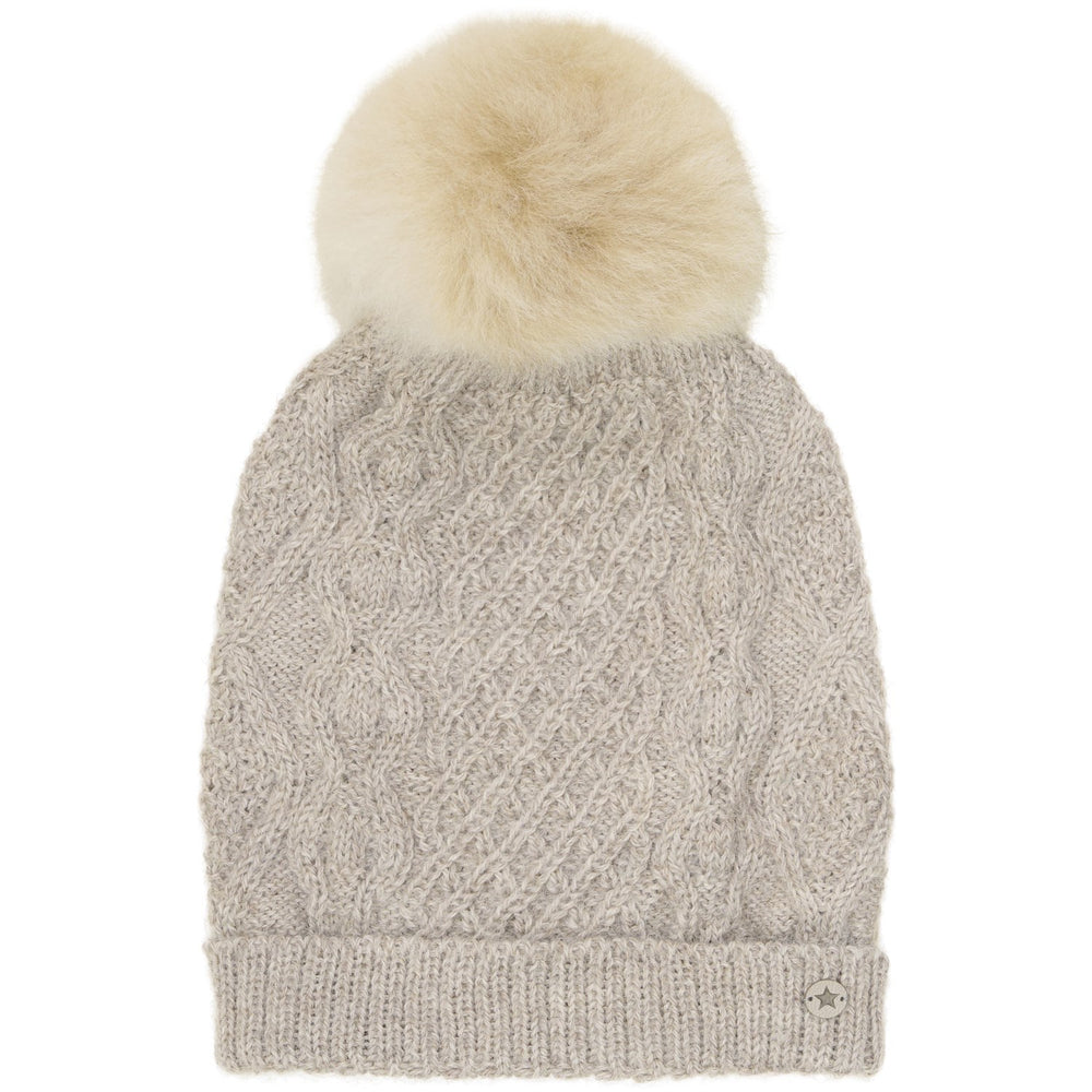 Huttelihut Camel Melange Hat Wool Knit Alpaca Pompom