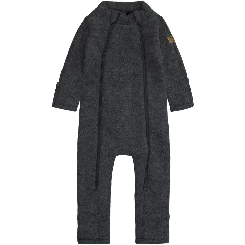 Introducing the Mikk-line Anthracite Melange Wool Suit, the ultimate in comfort and functionality for your little one. Designed with the softness of mulesing-free merino wool, this suit offers breathability and maintains an even body temperature to keep your child sweat-free in cooler climates. Its versatile design serves both as a standalone outfit and a mid-layer under rainwear or snowsuits.