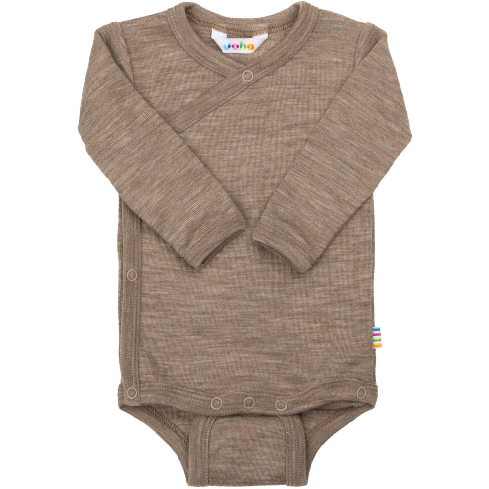 Discover the cozy charm of Joha's Beige Melange Body, designed with the ultimate softness of wool blended with silk for your child's comfort. This long-sleeved bodysuit features a practical wrap-around closure and secure snap buttons between the legs, ensuring easy dressing and durability. The gentle melange fabric in a soothing beige hue is Oeko-Tex 100 certified, guaranteeing it's free from harmful substances, perfect for delicate skin. Ideal for everyday wear, this bodysuit combines style, functionality, and comfort, making it a top choice for your little one.
