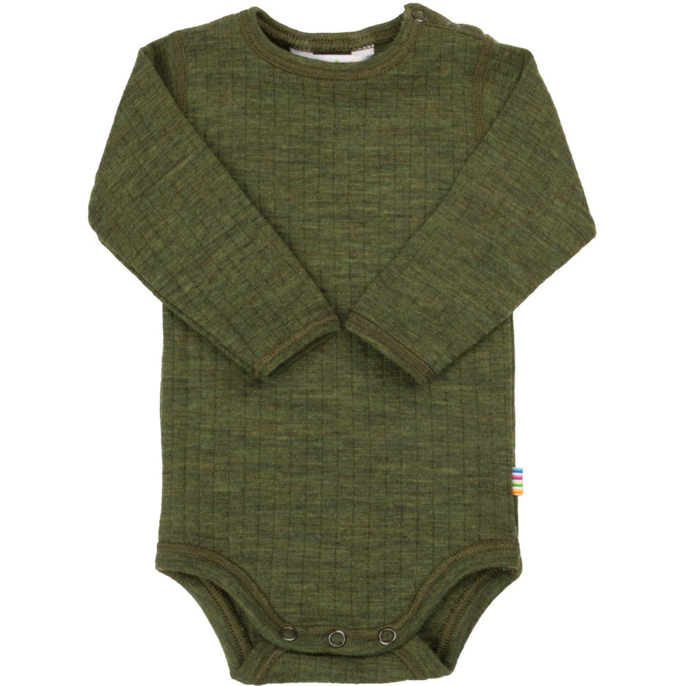 Discover the perfect blend of style and comfort with our Joha Dark Olive Body M/Lange Ærmer bodysuit. This charming piece is crafted from pure merino wool, promising a gentle touch with every wear. Its lightweight, stretchy fabric features a unique vertical groove pattern, ensuring ease of movement and a snug fit. Designed thoughtfully with snap buttons on one shoulder and between the legs for hassle-free dressing, the bodysuit comes in a gorgeous dark olive melange that adds a fashionable twist to your child's wardrobe. Ideal for indoor use, it is also Oeko-Tex 100 certified, ensuring safety and eco-friendliness. Trust in the durability and easy care of this delightful addition to your little one's collection.