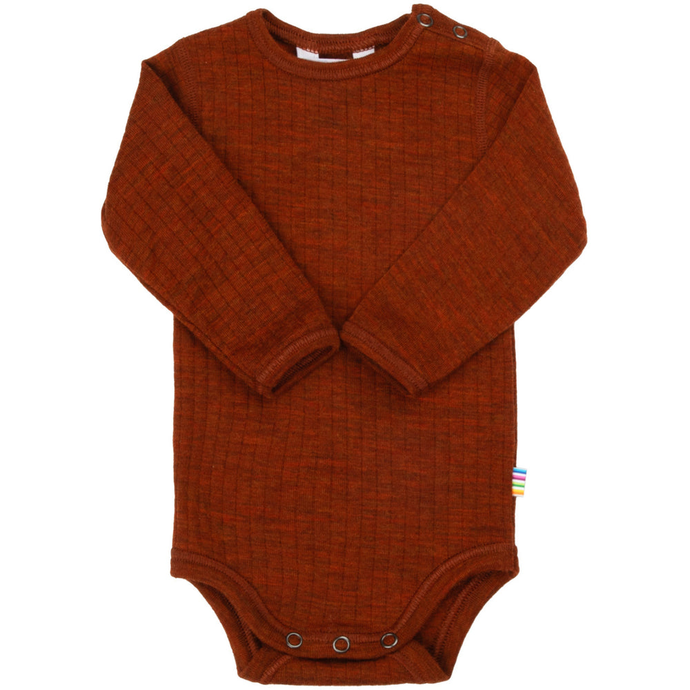 Introducing the cozy Joha Russet Body with long sleeves, perfect for your child's comfort and style. Crafted from pure merino wool, this bodysuit features a gentle melange fabric with a vertical groove pattern that's as stylish as it is soft. The stretchiness ensures a snug, comfortable fit, while the practical snap buttons on one shoulder and between the legs make dressing and diaper changes a breeze. Certified Oeko-Tex 100, it ensures safety for your baby's sensitive skin. Ideal for indoor wear, it combines warmth, ease, and adorable fashion in one. Materials: 100% Merino Wool Certifications: OEKO-TEX® STANDARD 100