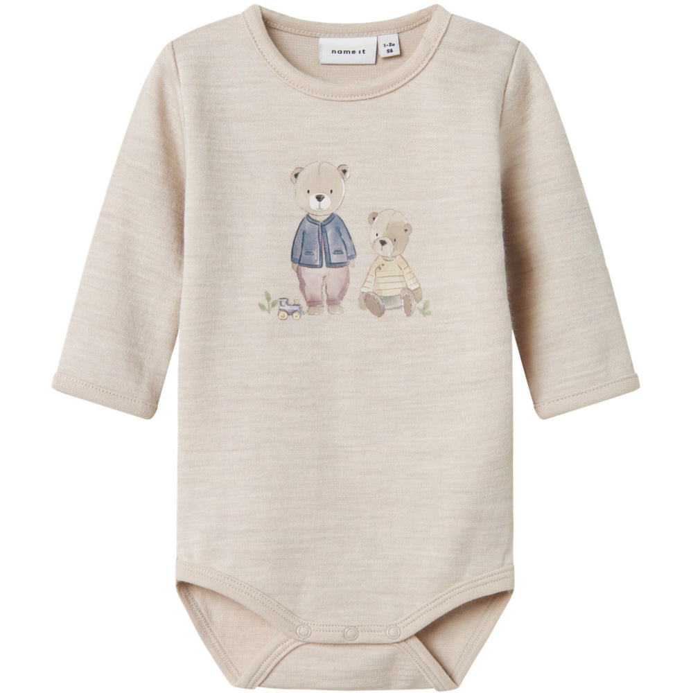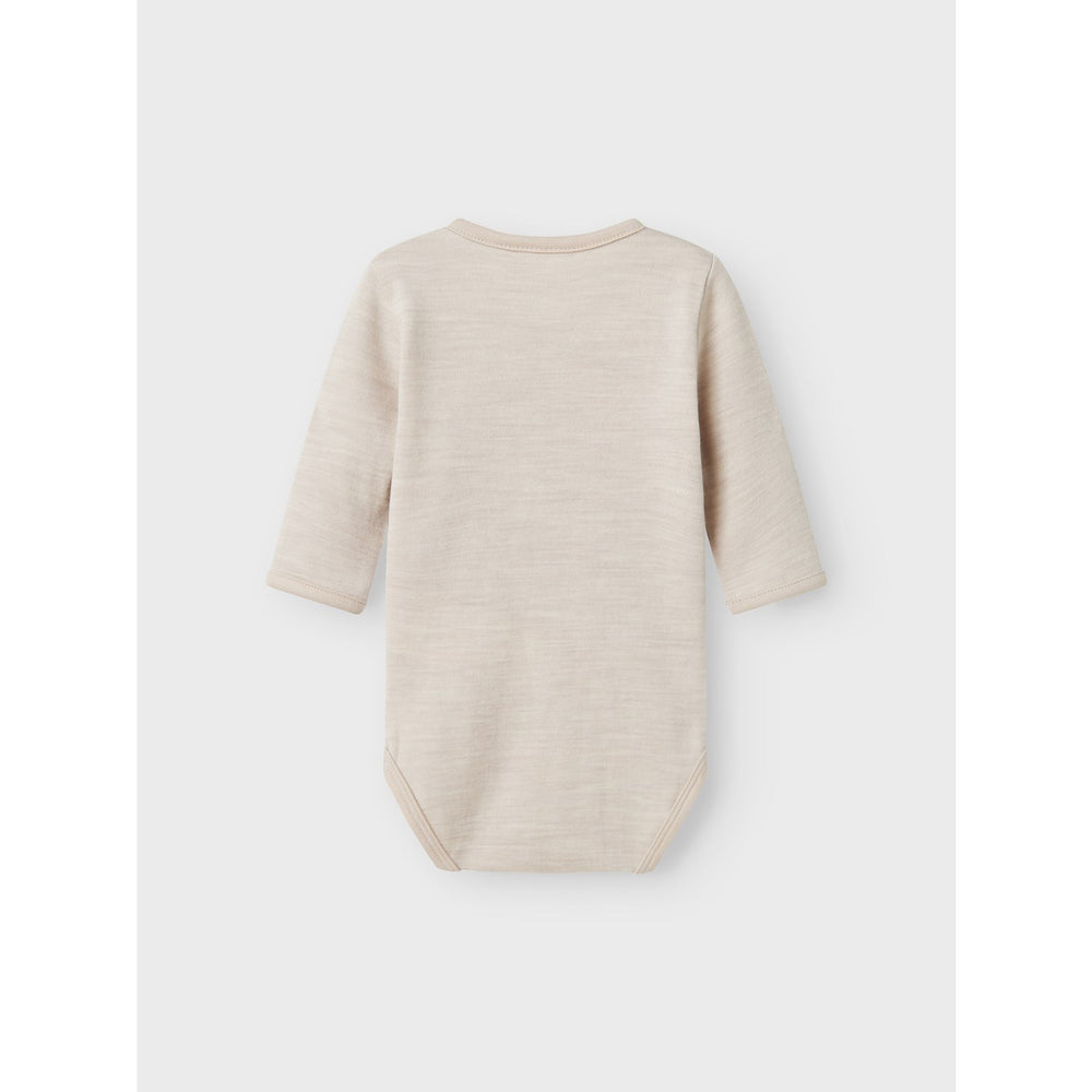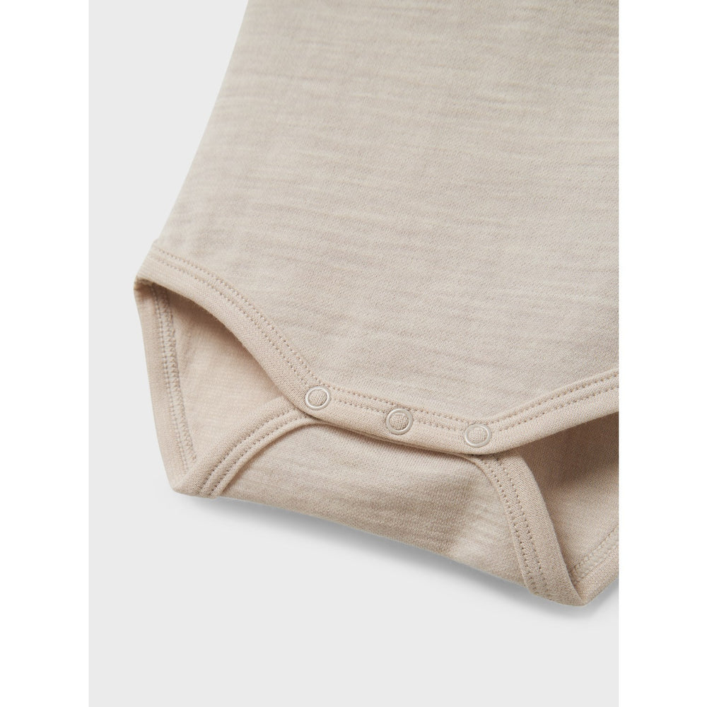 Ideal for daily wear, this bodysuit from Name It guarantees both comfort and style for your child, making it an excellent choice for both busy days and relaxed moments. Invest in this piece to keep your little one comfortable, no matter the weather! Closure: Press stud fastening in crotch Materials: 52% Wool - Merino - RWS, 41% Cotton, 7% Polyamide Washing instructions: Maximum Washing Temperature 30°C - Gentle Process Extra: The main material in this product contains a minimum of 20% certified wool where animal welfare has been respected