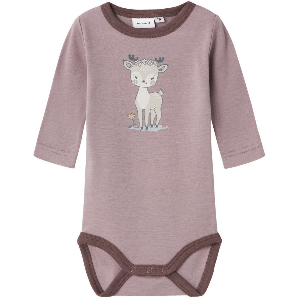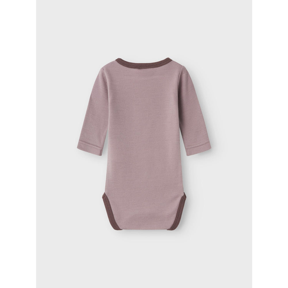 Discover the delight of our Name It Purple Dove Willit Wool Body, a must-have woolen bodysuit that perfectly blends style, comfort, and functionality for your little one's wardrobe. Crafted from premium wool, this bodysuit is celebrated for its exceptional thermal properties, providing warmth on chilly days and breathability during warmer weather. The natural softness and fluffy appearance ensure your child looks as snuggly as they feel.