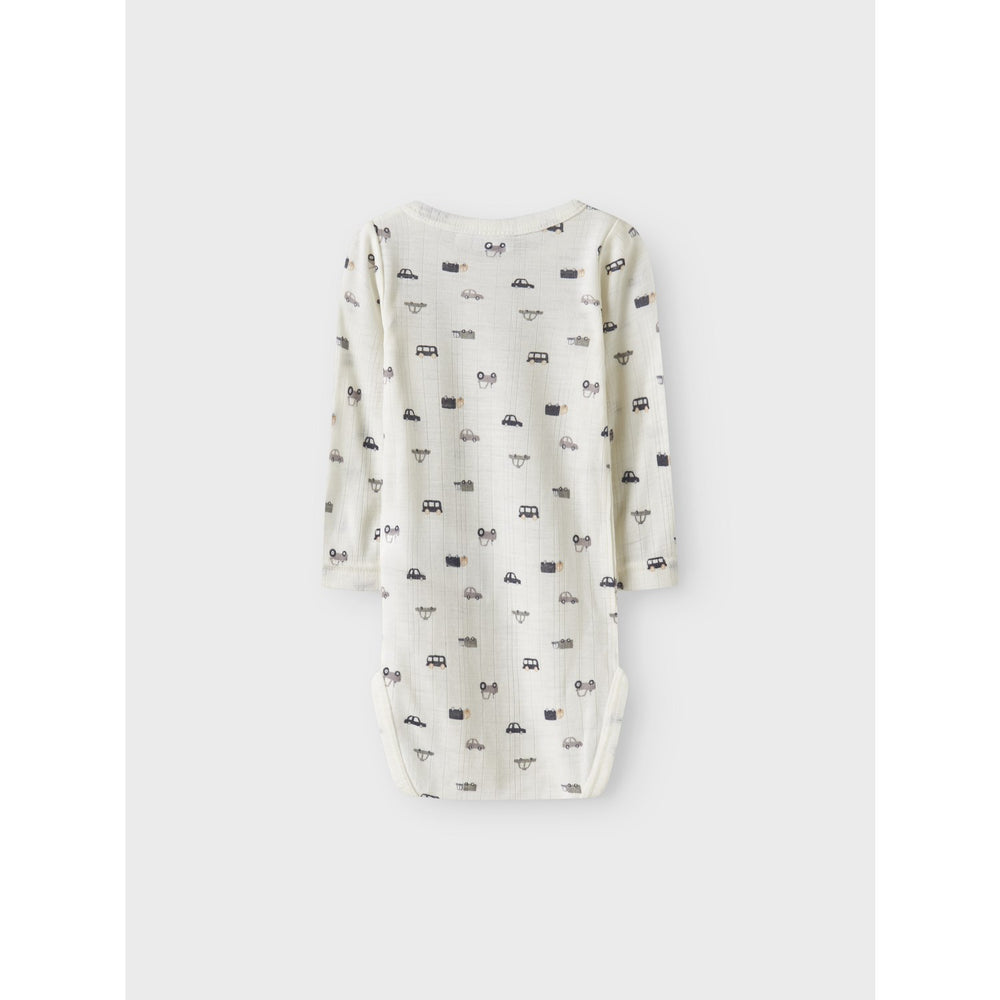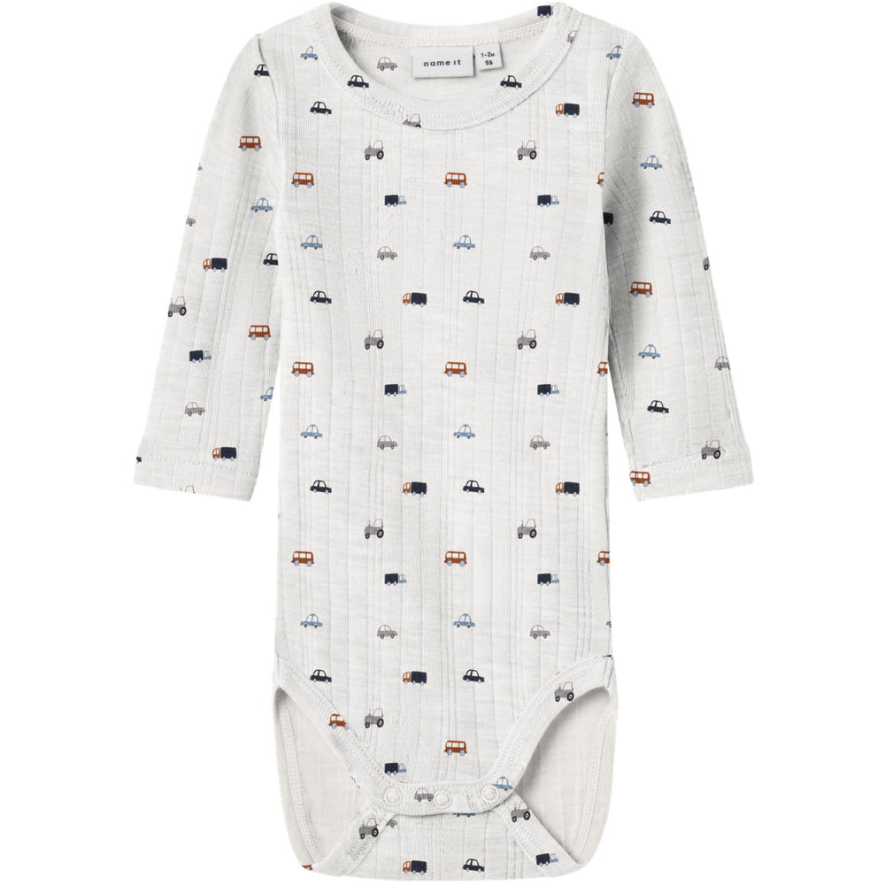 Dress your little one in the charming Name It Snow White Small Cars Nbmwang Wool Needle LS Body Noos bodysuit, perfect for ensuring comfort throughout the year. Crafted from cozy wool, this piece features a unique needle drop design with delightful dropped stitches that create an adorable pattern. Available in a fresh Snow White with a lively small cars print all over, it boasts long sleeves and a comfortable O-neck with convenient press stud fastenings for easy dressing. Ideal for playful days and peaceful nights, this bodysuit combines style, comfort, and practicality, making it a must-have in your child's clothing collection.
