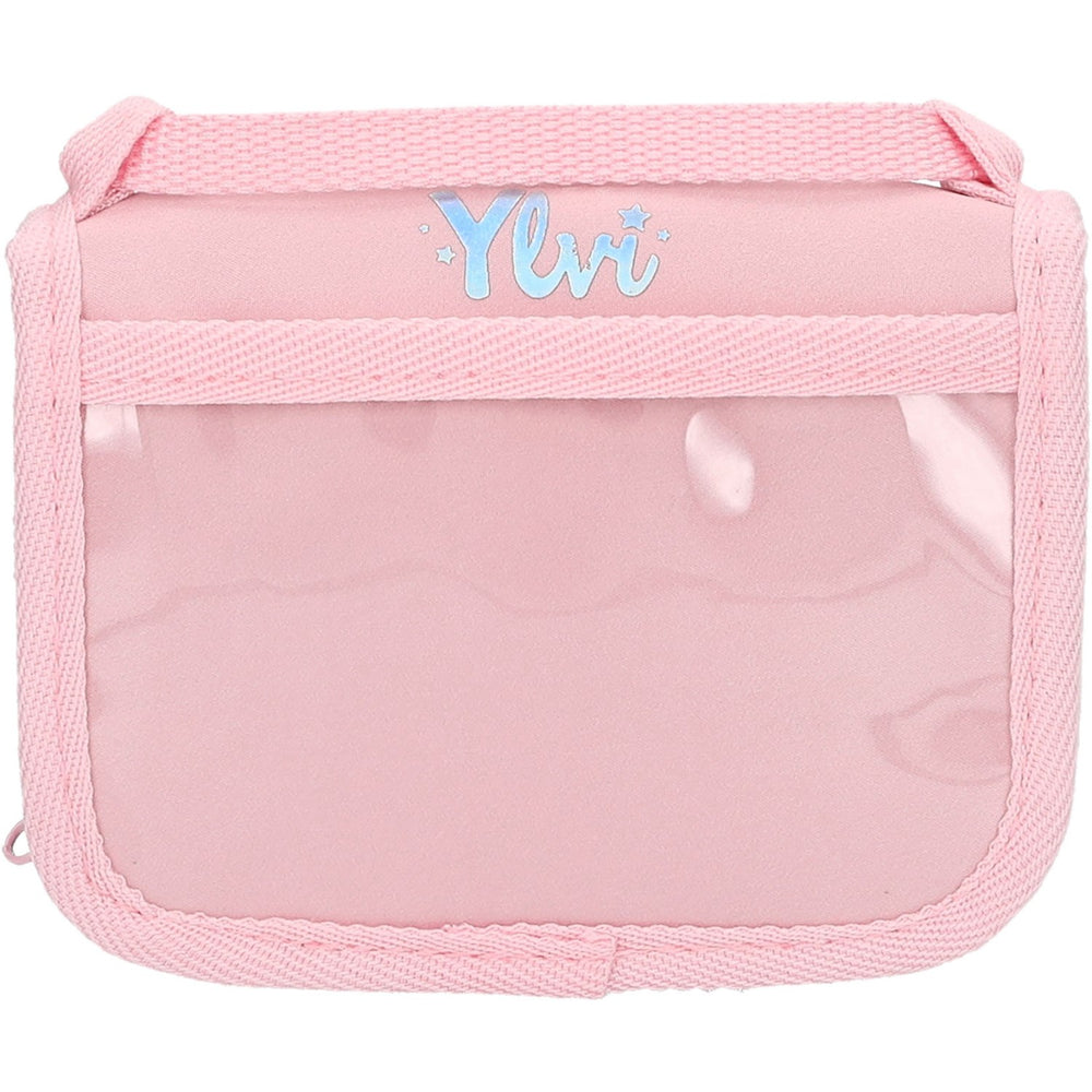 Introducing the Ylvi Breast Pouch in enchanting rose color, adorned with a whimsical unicorn and rainbow motif. Designed for kids' everyday adventures, this pouch boasts a secure Velcro fastener, a coin pocket, and specialized compartments for notes, cards, and keys. The transparent window slip pocket is perfect for name cards or bus passes. Safety is prioritized with a color-coordinated shoulder strap featuring a safety clasp that opens under pressure, crafted from durable 100% polyester. Ideal for storing treasures and essentials, this breast pouch merges fun with functionality.