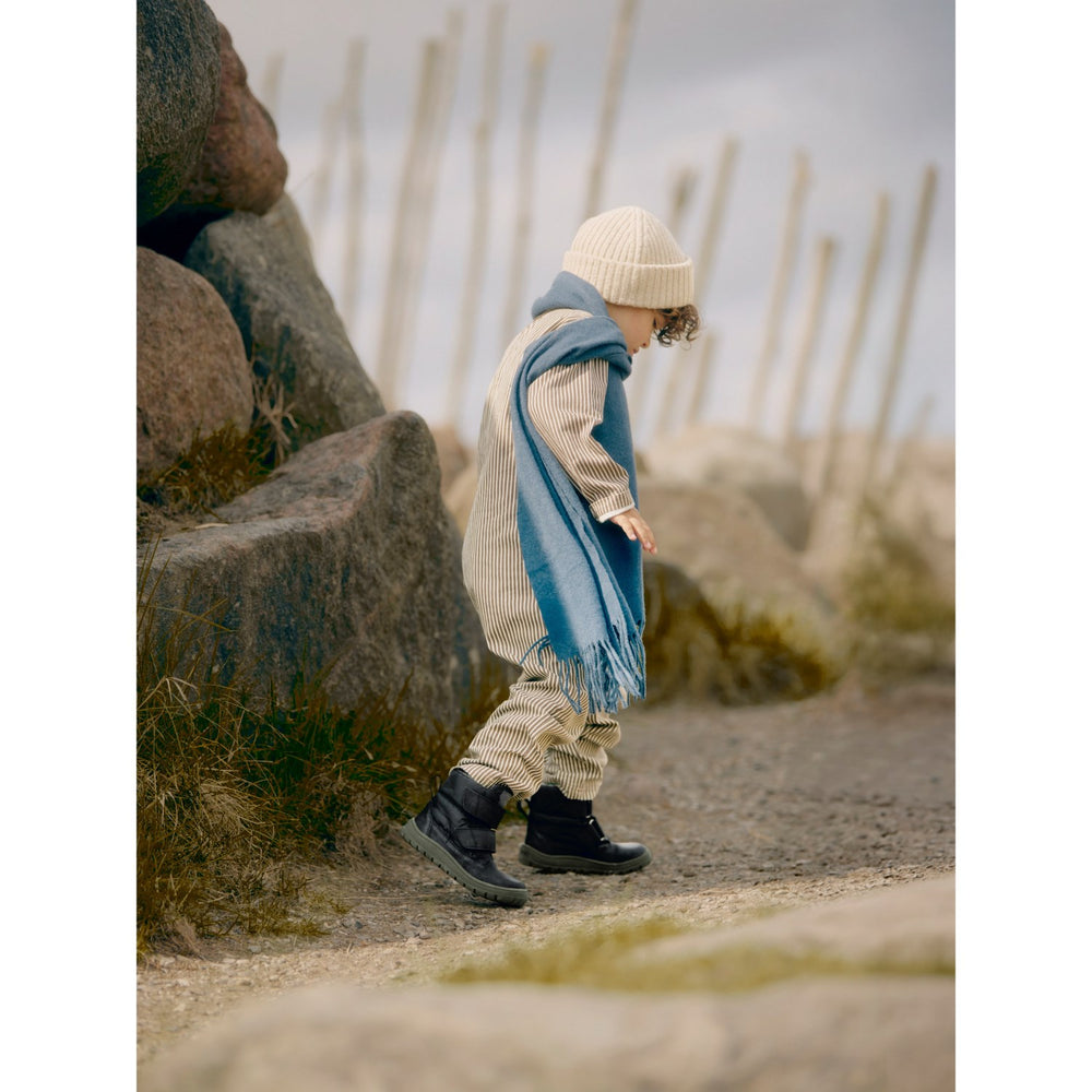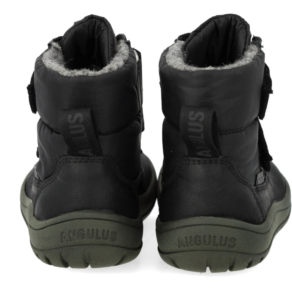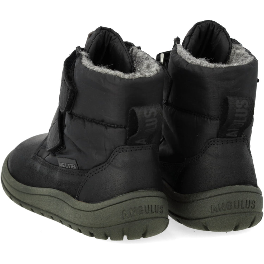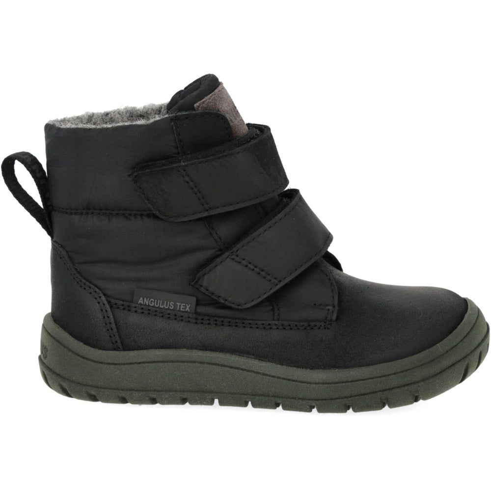 Explore the great outdoors with style and confidence in the Angulus Black/Dark Grey TEX Boot. This winter boot combines durable leather details and innovative lightweight nylon to provide warmth and dryness in any weather. Each boot is fashioned with adjustable velcro straps to ensure a perfect fit and features a padded insole and plush merino wool lining for unparalleled comfort. The design includes a fixed heel counter with a padded suede collar to enhance support and stability, essential for young adventurers. A handy logo heel loop enables easy wearing or removal, ideal for children on the go. Notably, the boot boasts a lightweight and flexible dark green ANGULUS rubber sole, offering a spacious fit that allows ample toe movement. Sustainably conscious, this boot is crafted from recycled nylon, natural, breathable leather, and features a PFAS-free TEX membrane. Lovingly handmade in Portugal and thoughtfully designed in Denmark, it's a testament to quality and sustainability. When purchasing, remember to measure your child’s foot to find the perfect size, enhancing both comfort and safety.
