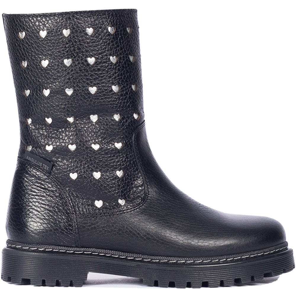 Angulus Black Tex-Boot Med Udstansede Sølvhjerter