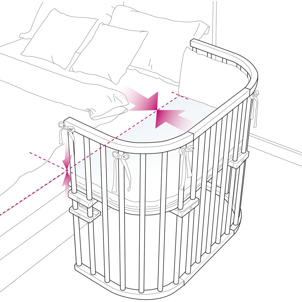 This versatile co-sleeper features a tool-free, secure belt attachment system for instant setup next to any Boxspring bed. Transformation is a breeze as it can be converted effortlessly into a bench, play table, or even a big cot with additional accessories. Crafted from natural, sustainably sourced solid beech wood, it's free from harmful substances, ensuring it's as kind to the environment as it is to your child.