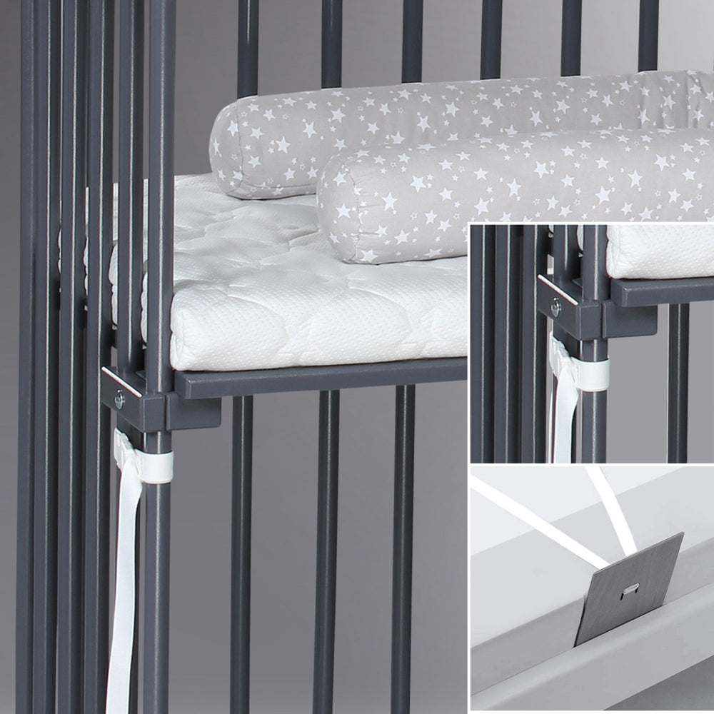 Discover the ultimate comfort and convenience of the babybay® Grey Varnished Boxspring XXL Co-Sleeper. Designed for closeness, this co-sleeper allows you to maintain an intimate bond with your newborn through those precious first months. Ideally suited even for twins, the extra-large XXL lying surface ensures that your baby stays snug right by your side. Engineered to fit seamlessly with high and frameless box spring beds, the babybay® features a patented adjustable height, ensuring there are no gaps or steps between your bed and the co-sleeper.