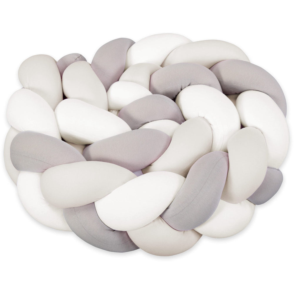 Introducing the babybay® Nest Snake Jersey Braided 180 cm, a beautifully handcrafted bed bumper designed to offer the utmost in comfort and protection for your infant. This elegant accessory is perfectly suited to create a secure and soothing environment for baby's sleep, safeguarding them from drafts with its unique braided design. Crafted from high-quality, combed cotton jersey, the nest snake is pleasantly soft yet durable, ensuring a gentle touch against your baby's delicate skin while providing reliable protection from the wooden edges of bedframes. Filled with hypoallergenic silicone wool, it maintains a perfect balance between softness and firm support, and holds its shape beautifully over time. One of the standout features of this product is its impressive versatility. Whether used in a babybay® co-sleeper, a traditional crib, or even a playpen, the nest snake adapts effortlessly to suit various settings. It also serves as an excellent seat cushion when rolled up and secured with the included straps, making it a functional addition to your nursery. The nest snake is easy to maintain, machine washable up to 40°C, and comes with all necessary certifications for your peace of mind. It has been rigorously tested for harmful substances and boasts the "Confidence in Textiles" certificate according to Ökotex Standard 100 Class 1 for babies (12.0.03346). Ensure the safety, comfort, and stimulation of your little one with this premium, versatile nest snake, an ideal choice for parents seeking both quality and functionality in their baby's first years.