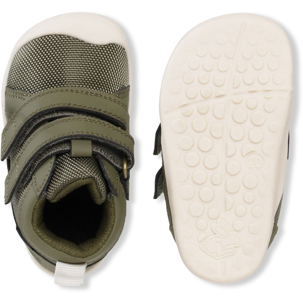 Explore the wonders of first steps with the Bundgaard Army Mio Sneakers, meticulously crafted for the tiny tots embarking on big adventures. These sneakers feature a charming blend of textile and microfibre, complemented by a stylish ivory-colored sole that enhances its sporty aesthetic. Perfect for both boys and girls, the Mio offers a light and breathable fit with a soft mesh interior and a waterproof TEX membrane, ensuring little feet stay dry and comfy no matter the weather. Its roomy forefoot design allows toes to wiggle freely while providing high ankle support and a stable heel counter for secure toddling. Additionally, the practical Velcro fastener adjusts for an impeccable fit, promoting optimal comfort and support. Equipped with a durable, non-slip TPR outsole, the Mio ensures every little step is safe on various terrains, making it an ideal choice for your child's first pair of shoes.
