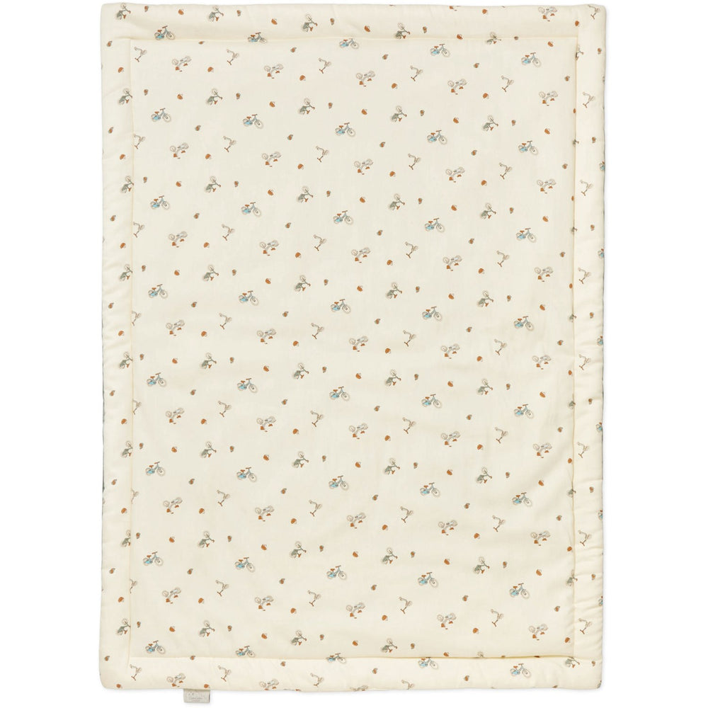 Surround your little one in pure comfort with Cam Cam Copenhagen's Bicycles Soft Blanket. Crafted from the finest organic cotton, this plush, padded blanket ensures softness and warmth, ideal for swaddling your baby both at home and on the go. Featuring a whimsically printed front of green, brown, and blue bicycles on a cream background and a solid color reverse, this versatile blanket not only provides comfort but also ignites little imaginations. Easy to maintain, it's perfect for daily use, guaranteeing a cozy, stimulating environment wherever you are. Materials: Outer fabric: 100% organic cotton. Filling: 100% Oeko-tex Standard Polyester - OCS total 41% Organic Material. Category: OCS Certified - ETKO 4401 Measurements: 90 x 1 x 120 cm Certifications: OCS