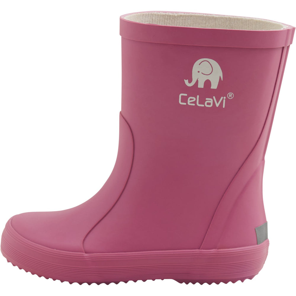 Discover the charm and durability of CeLaVi Rose Wine Basic Wellies, perfect for adventurous little ones. Crafted from high-quality natural rubber, these rain boots are handmade to ensure top-notch quality and resilience. Featuring an appealing solid color design complemented by the reflective CeLaVi logo and a safety-enhancing reflective stripe at the heel, they promise both style and safety. The slim heel design enhances mobility, allowing children to run and play freely, while the thoughtfully sized boots ensure a snug fit, leaving enough room for thick socks. Easy to care for and available in various colors to coordinate with CeLaVi's rainwear, these boots are an ideal choice for keeping your child comfortable and stylish in wet weather. Materials: 100% Rubber