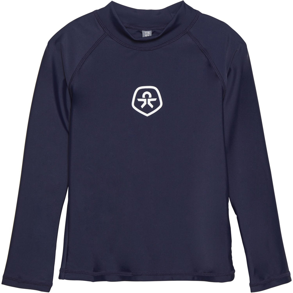 Introducing the Color Kids Dress Blues T-Shirt L/S – Solid, an essential for any child's wardrobe. Crafted from soft, durable material, this long-sleeve swim top boasts a classic solid blue design that is both stylish and functional. Perfect for swimming or casual wear, its snug fit ensures comfort and flexibility while offering protection from the sun. Ideal for endless aquatic adventures or everyday play, this top combines practicality with playful style.