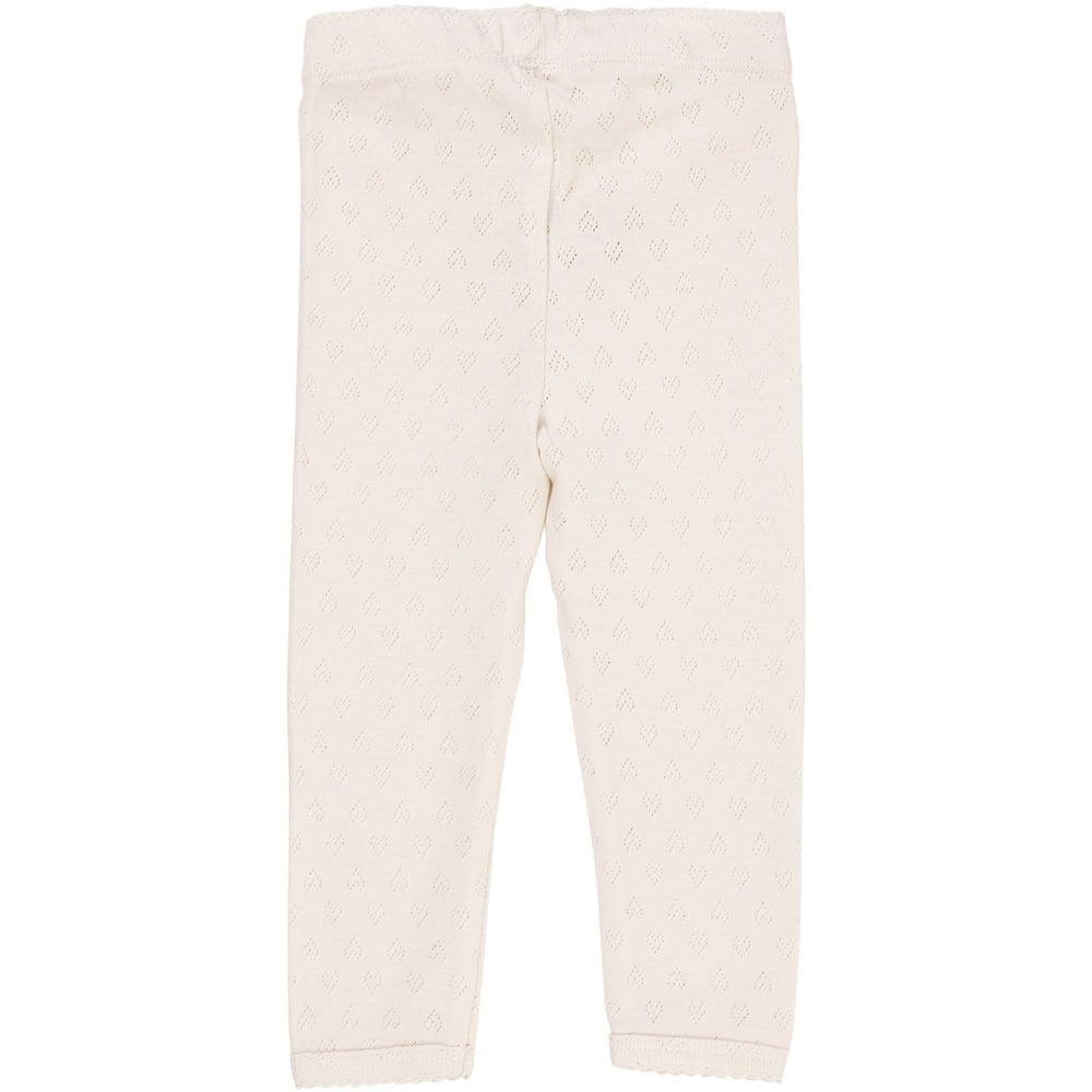 Dress your little one in the charm and comfort of COPENHAGEN COLORS Cream Pointelle Heart Leggings. Skillfully crafted from 100% GOTS certified organic cotton, these leggings feature a delightful heart pointelle pattern that catches the eye. They come in a variety of colors, each maintaining their appeal through numerous washes at 40 degrees, thanks to the high-quality material that resists lint and fading. The super-soft jersey fabric ensures a snug yet gentle fit, perfect for delicate skin. For care, simply machine wash, avoiding tumble drying and bleaching to keep them looking great. Perfect for everyday wear, they offer both style and practicality in one adorable package.