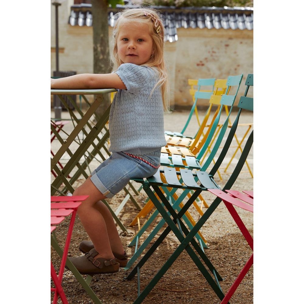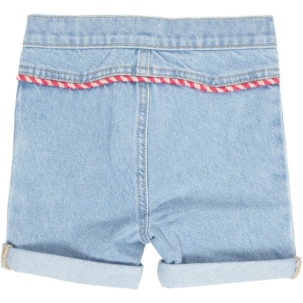 Brighten up your child's wardrobe with the Copenhagen Colors Lt Blue Indigo Washed Organic Denim Shorts. Fashioned from 99% premium organic cotton, these shorts boast an eye-catching rope decoration, blending style and sustainability effortlessly. Their light indigo hue adds a splash of color, while the soft fabric ensures comfort and durability. Designed to grow with your child, these versatile shorts are perfect for playdates or picnics, promising both allure and longevity.