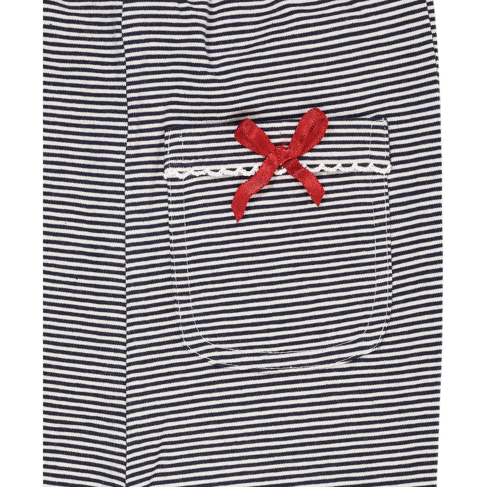 The design showcases trendy trumpet-style trousers enhanced with a cute bow at the front, lending a chic touch that is sure to stand out. The organic cotton material not only feels comfortable but also offers excellent durability and ease of care, capable of withstanding numerous washes while retaining its shape and color. Sized to ensure a great fit, these pants prioritize wearability and freedom of movement, which are essential for growing kids.
