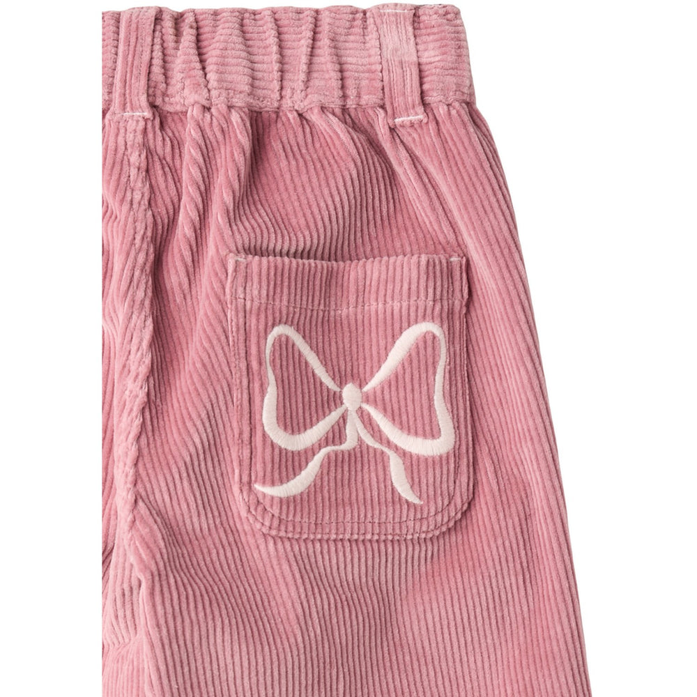 Upgrade your little one's wardrobe with our Copenhagen Colors Rose Comb Corduroy Pants. Crafted from soft, 100% velvet corduroy, these wide-leg pants offer a blend of comfort and style. Featuring a rich rose hue with a unique embroidered bow on each of the two back pockets, they bring a touch of elegance to any outfit. The adjustable waistband and easy button and zipper closure ensure a perfect fit for growing kids. Ideal for both casual and dressy occasions, these pants promise both durability and easy maintenance. Embrace both comfort and chic with this stylish must-have for children.