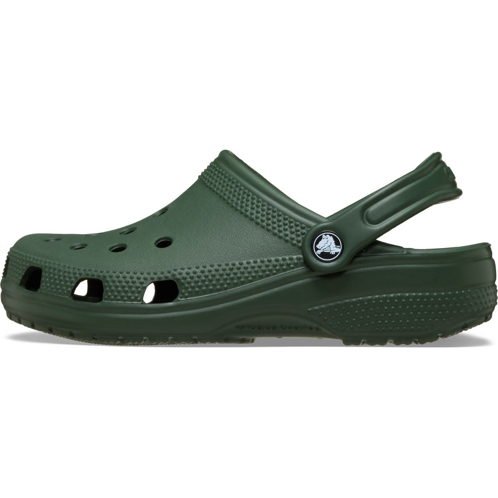 Discover the charm and comfort of the Crocs Field Green Classic Clog! Crafted from durable, lightweight material, this pair features a vibrant field green color with a sleek, slip-on design. Not only do they boast an easy-to-clean surface, but the roomy fit ensures day-long comfort for your child. Ideal for both indoor and outdoor activities, these sandals are perfect for little adventurers. Inner material: 100% Thermoplastic (EVA) Outer material: 100% Thermoplastic (EVA) Outsole material: 100% Thermoplastic (EVA)