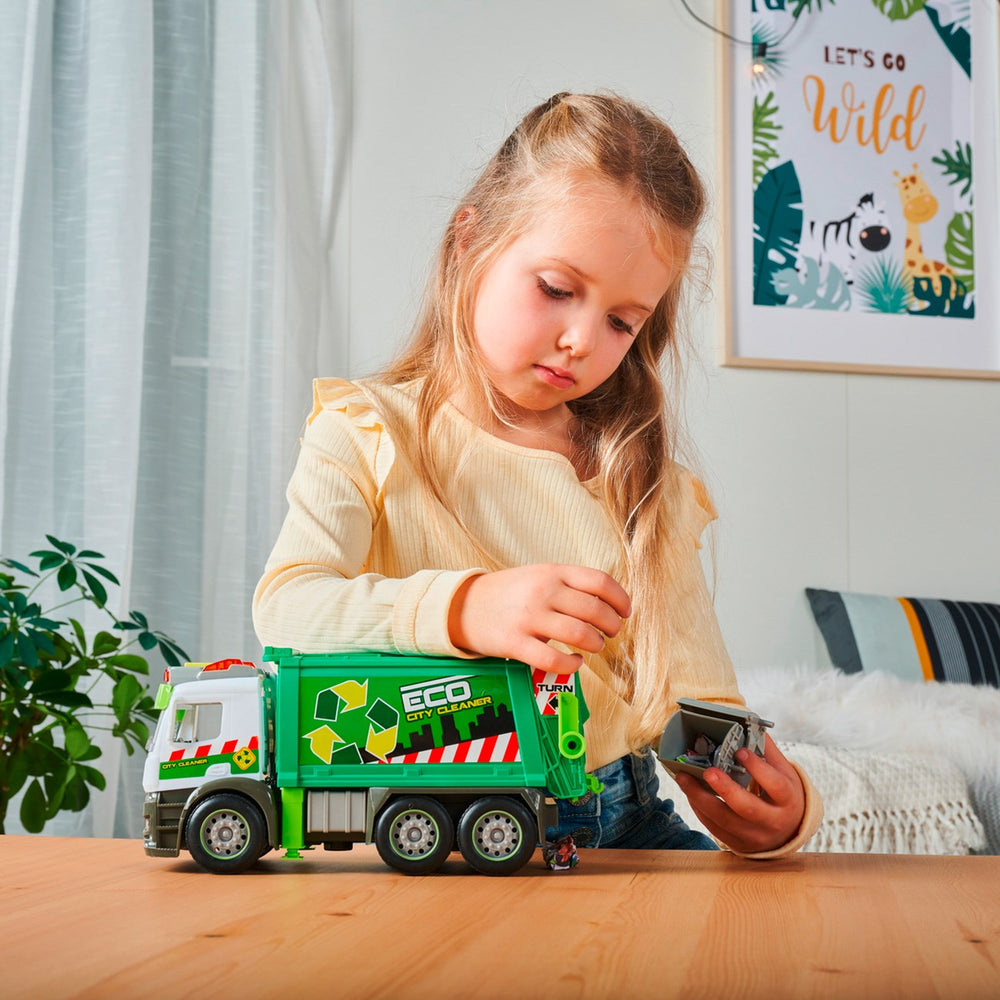 Introduce your child to the thrills of waste management with the Dickie Toys Mercedes Garbage Truck! This 26 cm robust toy features a friction motor which powers the truck's forward motion, while the realistic lights and sounds enhance playtime. Designed specifically for children aged 3 and above, it includes moving parts and a trash can that encourages interactive play and offers an educational glimpse into environmental care. Easy to use, store, and maintain, it’s perfect for little hands to manage and promises endless hours of engaging fun.