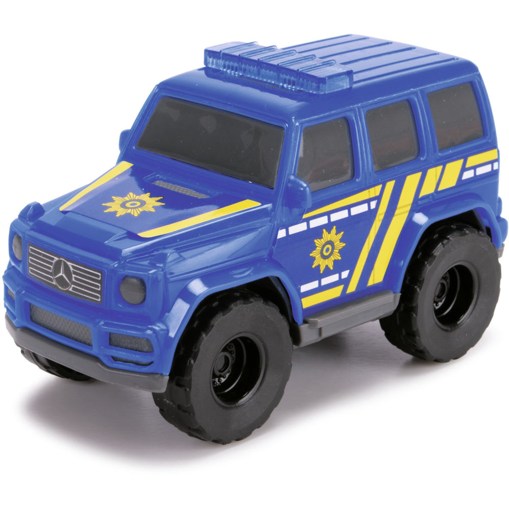 Discover endless fun with the Dickie Toys Mini Toy Cars 5-Pack, ideal for children aged 3 and up. This engaging set includes a Volvo Dumper with Excavator, Fendt Tractor with Trailer, and a Mercedes G-Class Police car paired with an Antos/Rosenbauer Fire Truck, each measuring 8cm in length. Featuring freewheel action for dynamic play, these mini cars foster creativity and motor skills while ensuring easy use and safe play. Perfectly sized for little hands, they offer straightforward portability and storage. Ignite your child's imagination and encourage educational play with this versatile collection.