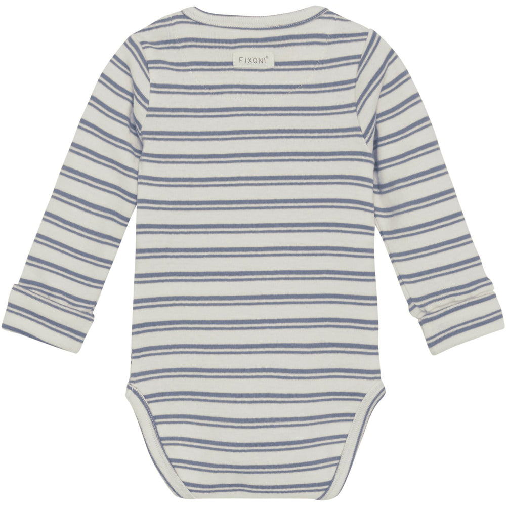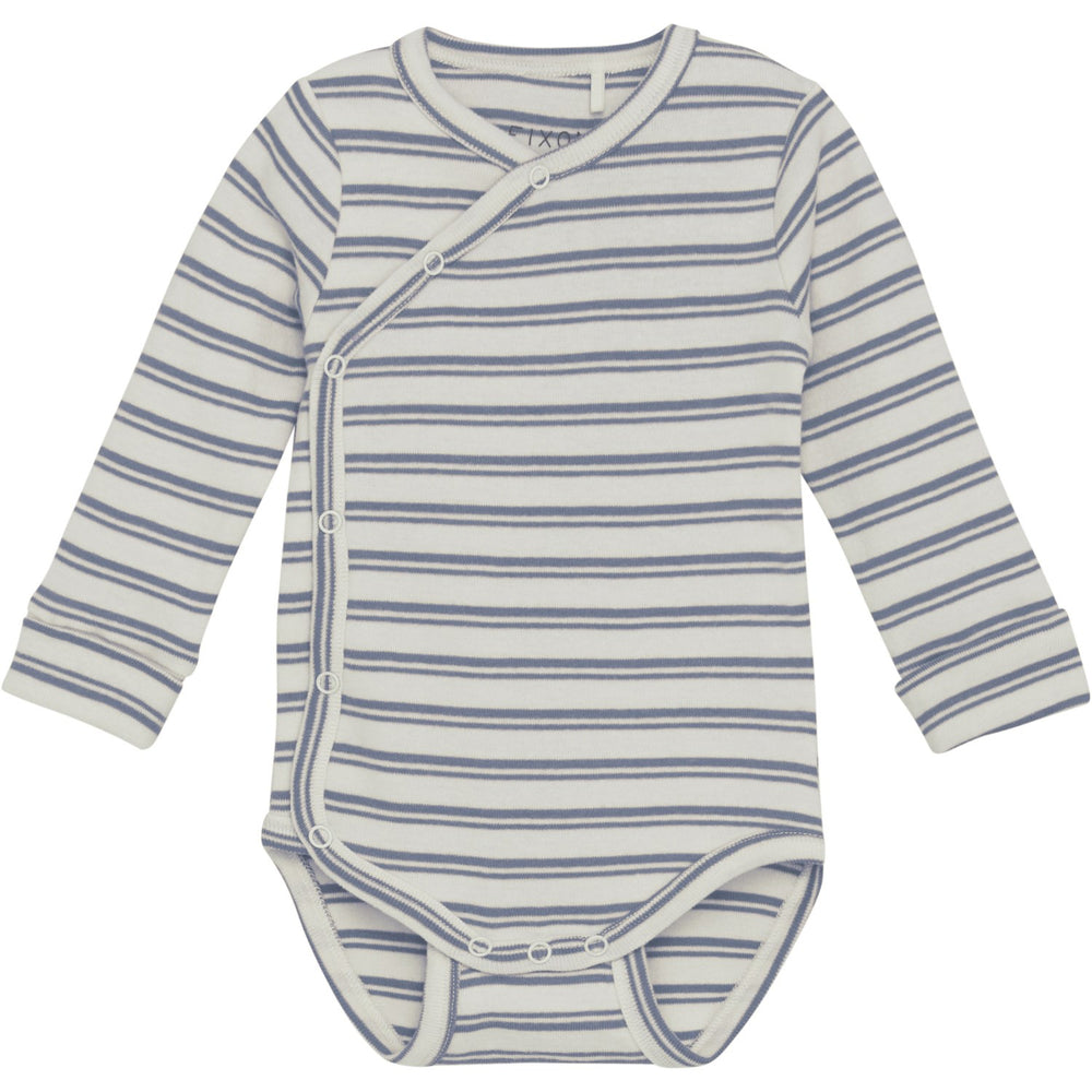 Discover the coziness and style of the FIXONI Flint Stone Wrap Bodysuit LS Rib, perfect for your little one. Crafted from organic, GOTS-certified material, this long-sleeved bodysuit features charming all-over stripes and a practical front wrap closure with extendable press buttons for growing babies. The adjustable sleeves and convenient snap buttons between the legs ensure easy dressing and comfort. Its durable design and easy-care instructions promise lasting wear and effortless maintenance, making it an ideal choice for busy parents and active babies.