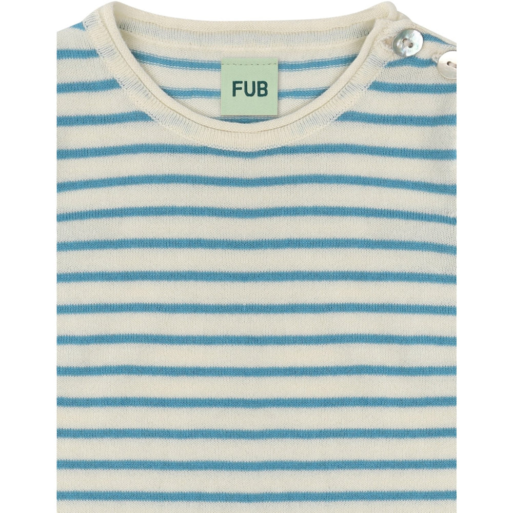 Dress your little one in this chic and timeless FUB Ecru/Sea Baby Short Sleeve Bodysuit. Crafted from 100% certified organic cotton, this lightweight striped bodysuit not only feels soft on your child's skin but also supports eco-friendly practices. The elegant design features short sleeves, a comfy round neckline with delicate rolling edges, and convenient pearl shell button closures at the shoulder complemented by snap fasteners at the crotch for easy changes. Perfect for daily wear, this bodysuit combines functionality with a classic style and the gentle care of organic materials, ensuring your baby stays comfortable and stylish. Materials: 100% Cotton GOTS