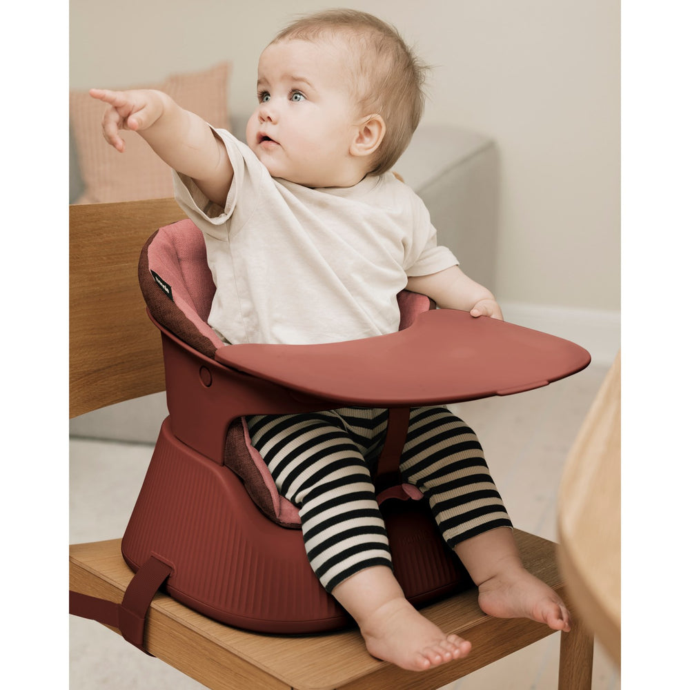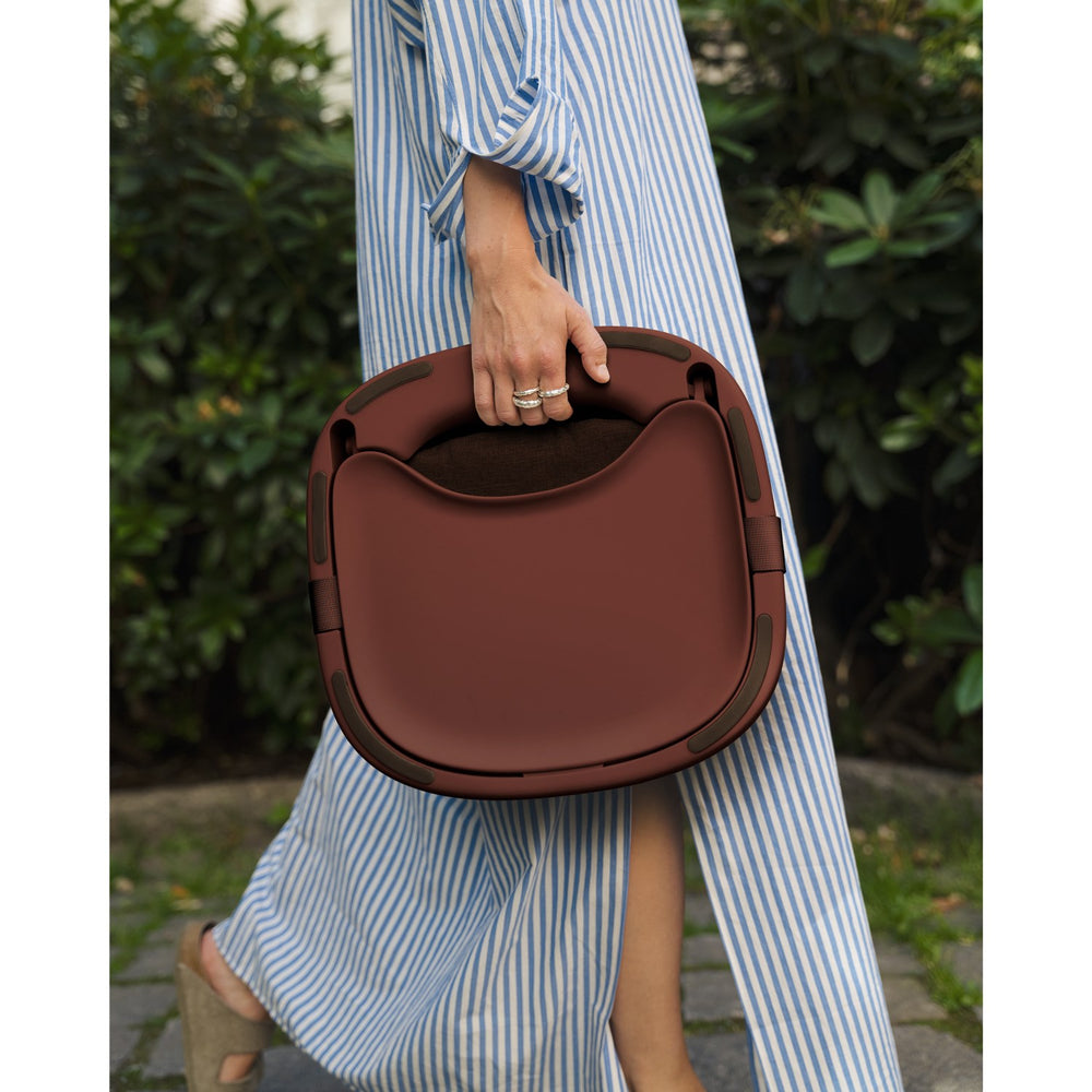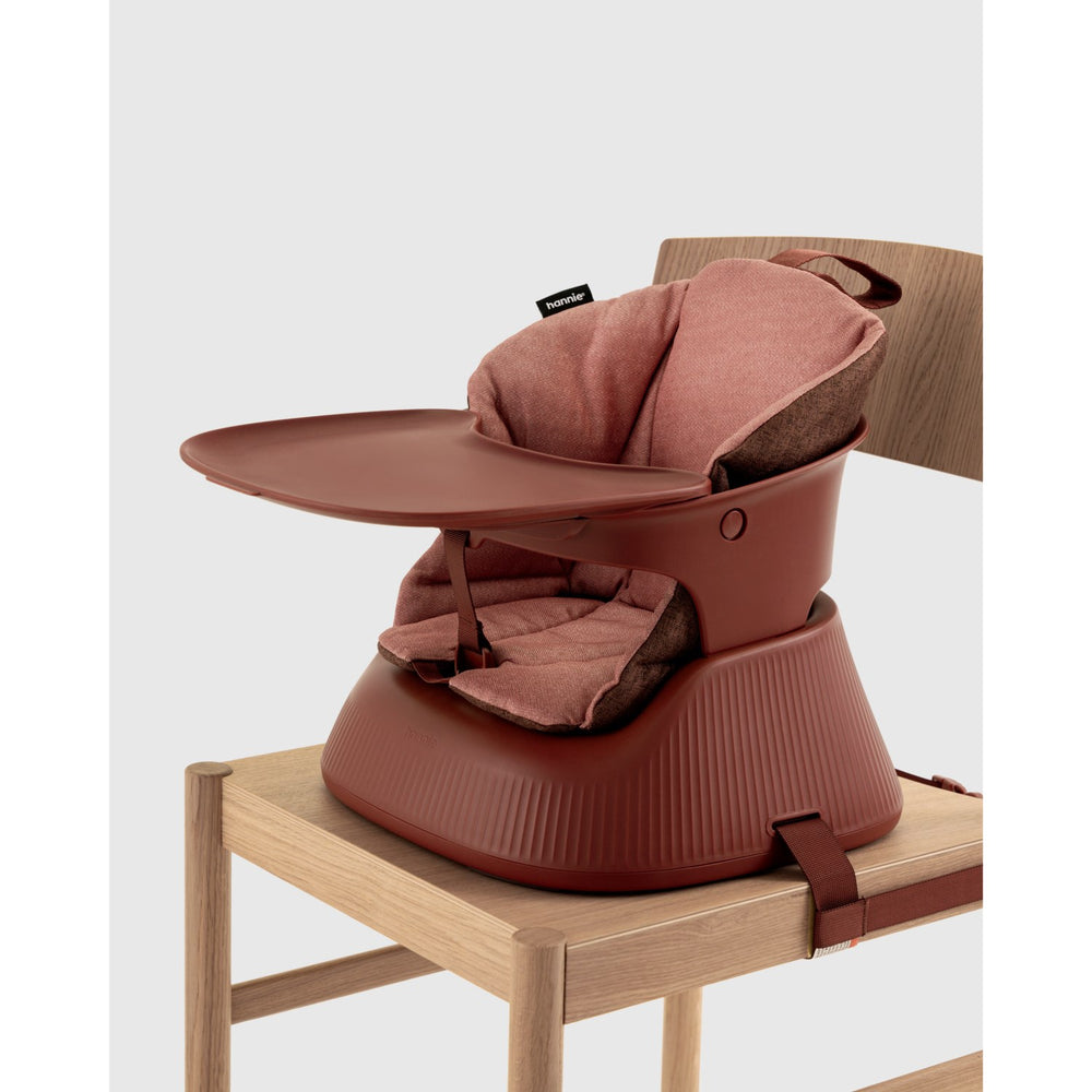 This versatile high chair doesn't just offer outstanding comfort and safety; it also stimulates and entertains your little one at meal times. The dual-sided design allows for a quick flip, refreshing the setting instantly. Discover how mealtime can be a delightful, hassle-free experience with the Hannie Mahogany Red Portable High Chair, where style meets functionality in your family's daily life. Materials: Polypropylen (PP), TPE & Polyester Measurements: 27,7 x 34,4 x 35,2 cm Washing instructions: Fabric is to be machine washable in 40°C