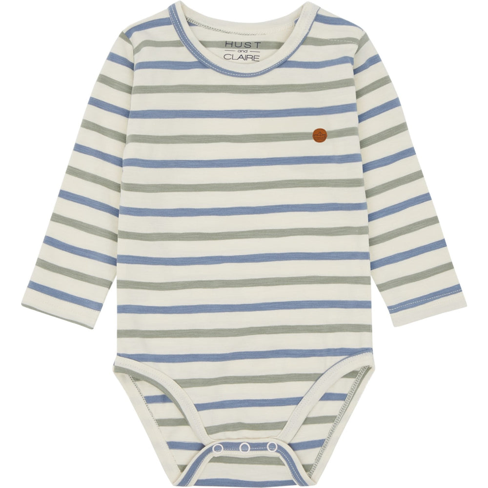 Dress your little one in the charming Hust & Claire Seagrass Carly Bodystocking, perfect for both comfort and style. Made with stretch cotton, this long-sleeved bodysuit ensures a snug fit while providing enough flexibility for all-day wear. The eye-catching striped pattern paired with a cute felt embroidered paper boat on the left chest adds a touch of whimsy and fun to your child's outfit.
