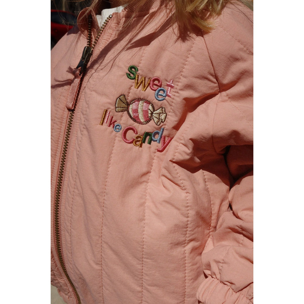Introducing the Konges Sløjd Cameo Brown Juno Bomber Jacket – a true classic in children's outerwear. Crafted from lightweight thermal material and equipped with cozy polyester padding, the Juno offers unbeatable insulation, while its breathable, fluorine-free coating ensures wind and water resistance. Its enduring design and neutral cameo brown shade make it fashionable yet versatile for everyday use. Durable and easy to care for, the Juno jacket keeps little ones comfy and stylish in any weather, truly a staple from the esteemed Konges Sløjd collection.