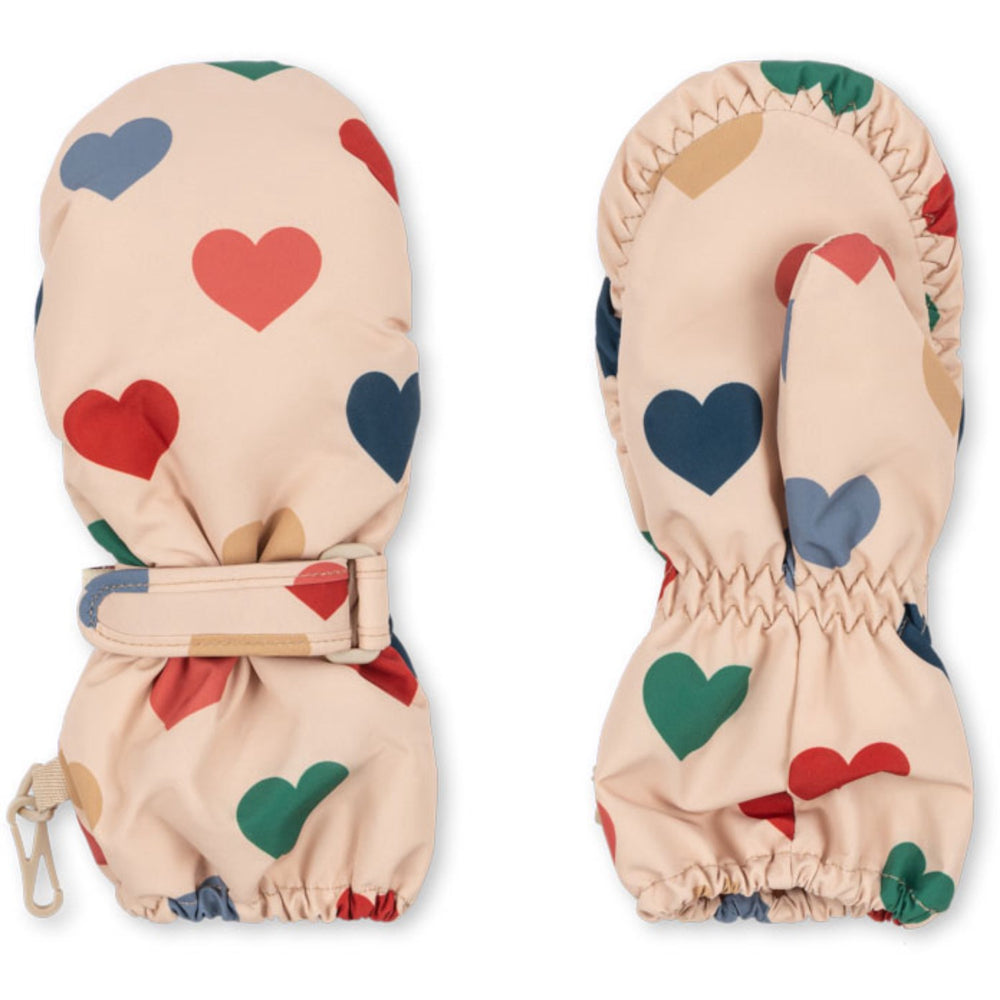 Keep little hands warm and dry this winter with Konges Sløjd Coeur Coloré Nohr Snow Mittens. Crafted from water-repellent material and lined with cozy soft fleece, these mittens are designed for ultimate comfort and functionality. They come equipped with adjustable wrists for a perfect fit and a double snap hook for secure attachment to any jacket. Adorned with a cheerful print, these mittens are as stylish as they are practical, perfect for children who love playing in the snow. Materials: Main 100% Polyester, Lining: 100% Polyester, Padding: 100% Recycled Polyester Certifications: OEKO-TEX® STANDARD 100 CLASS 1