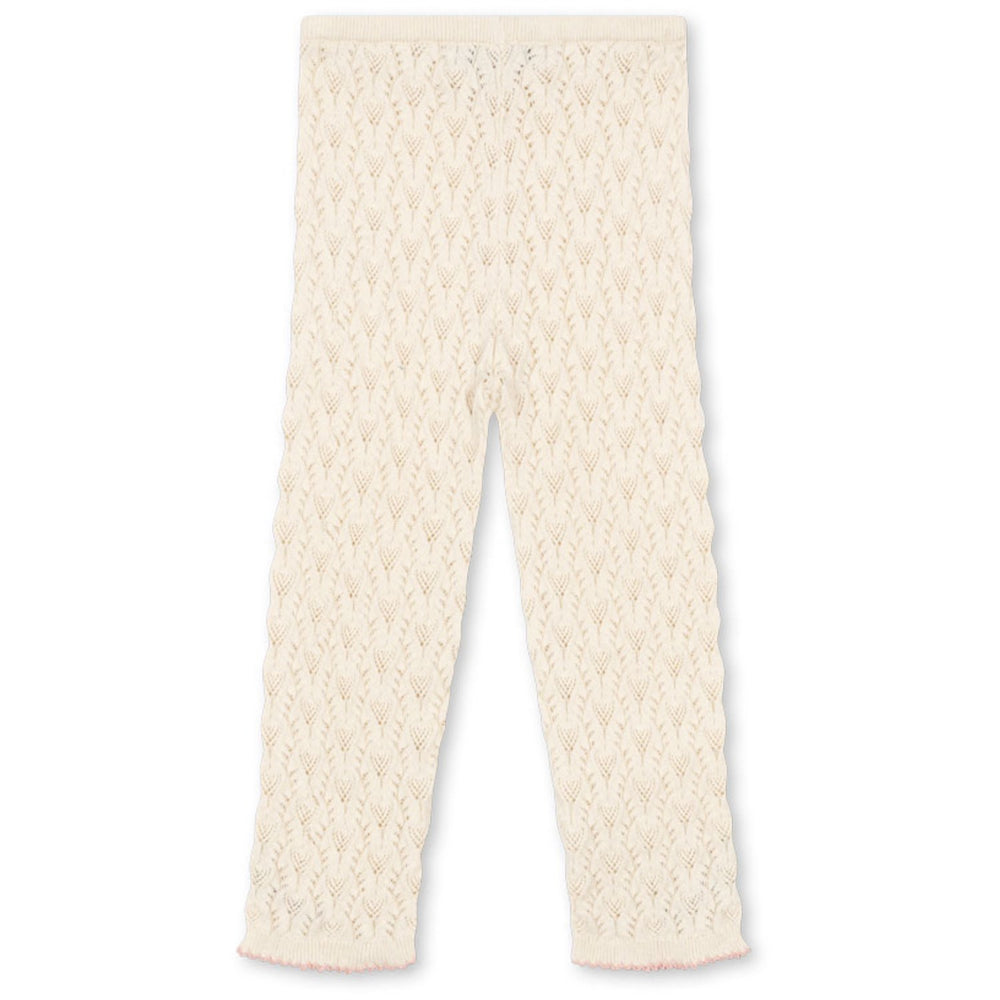 Introducing the Konges Sløjd Cream Off White Rosier Pants, perfect for your little one. These knitted pants feature charming embroidered roses at the hems and are made from an ultra-soft blend of 94% cotton, 3% wool, and 3% cashmere, ensuring maximum comfort. The cream off-white color and intricate embroidery add a touch of elegance, making them versatile for any occasion. The gentle fabric blend is easy to care for, providing both durability and comfort. Ideal for playful days or cozy evenings, these pants bring style and functionality to children's wear.