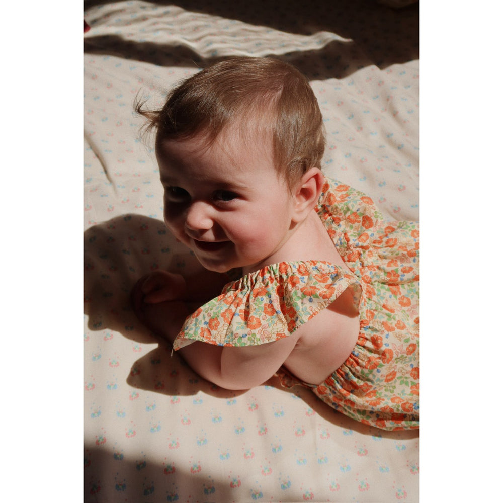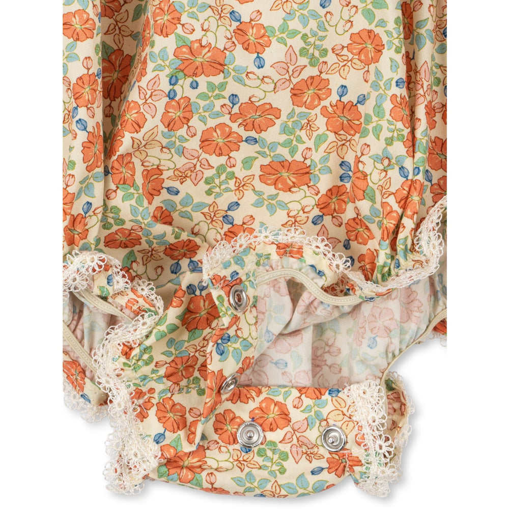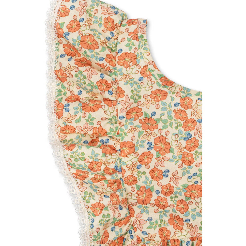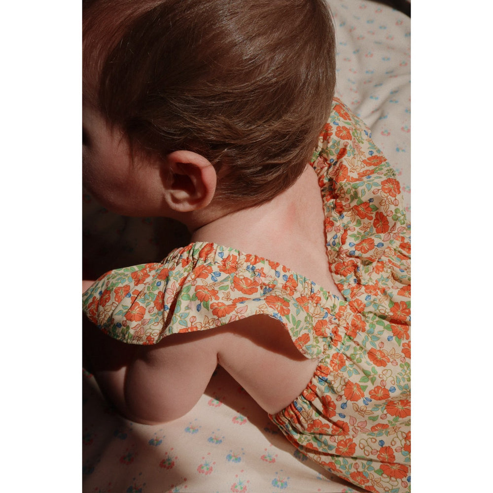 Discover the charm of the Konges Sløjd Kaluka Verbena Romper, perfect for your little one's comfort and style. Made from 100% organic cotton with GOTS certification (CU1094701), this romper boasts playful frill straps and a unique V-back design. The handy press buttons at the leg openings ensure easy dressing for ages 1 month to 3 years. Its delightful pattern and robust construction offer durability, making it an ideal choice for both daily wear and special occasions.