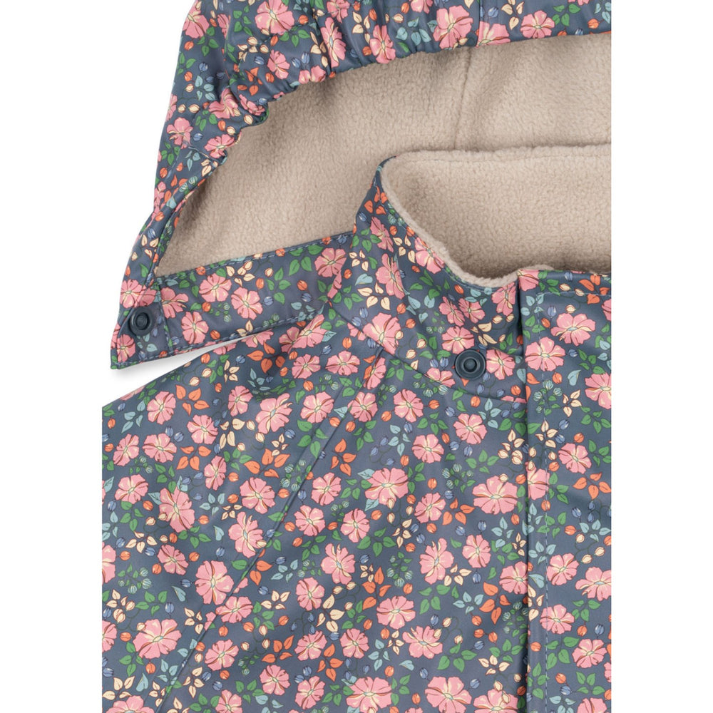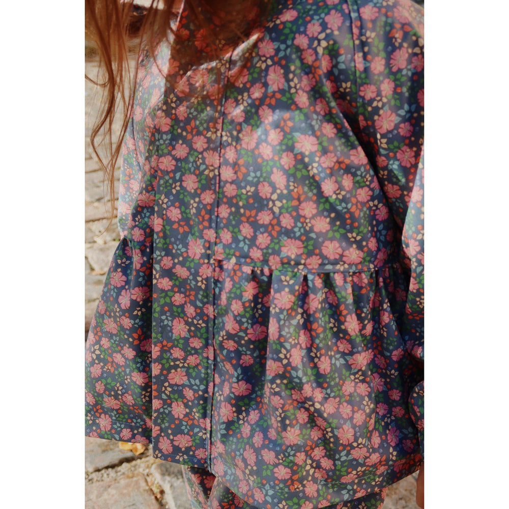 Keep your little girl cozy and dry with the Konges Sløjd Kyoto Rainy Palme Set. This charming rainwear features a waterproof and wind-resistant PU material adorned with a playful palm pattern, coupled with a warm fleece lining for added comfort. The set includes a detachable, lined hood and elastic cuffs, ensuring a snug fit and full protection in rainy weather. Welded seams enhance its durability, making it the perfect choice for your child's outdoor adventures. Easy to care for, this delightful outfit promises both style and functionality for any playful day out.