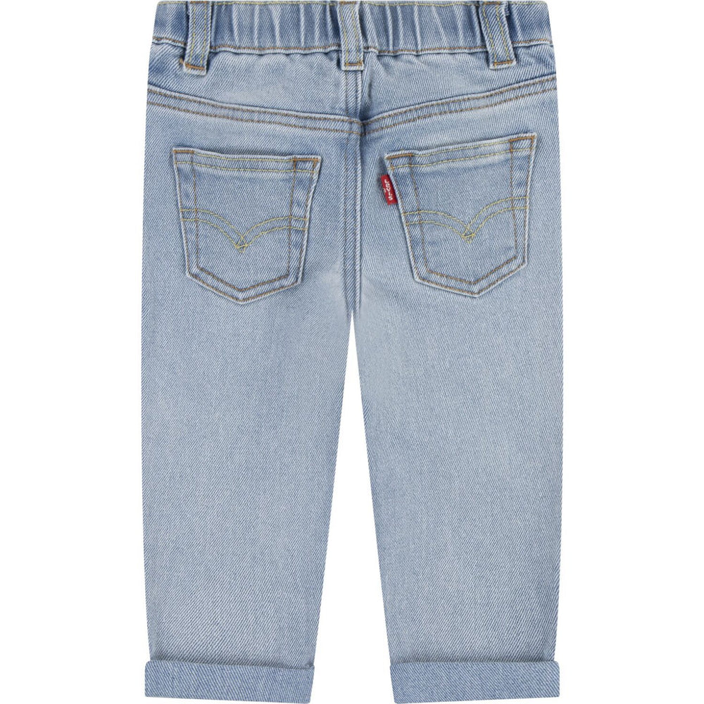 Introduce your little one to iconic style with Levi's Kiss and Goodbye Lvb Stay Loose Taper Jeans. Crafted from durable, high-quality denim, these jeans feature a playful pattern and a relaxed, tapered fit ensuring comfort for all-day wear. Available in various sizes, they perfectly blend classic Levi's craftsmanship with kid-friendly design, making them a versatile addition to any child's wardrobe. Ideal for both playground adventures and family outings, these jeans offer ease of movement and easy care, promising long-lasting wear and memorable style moments.