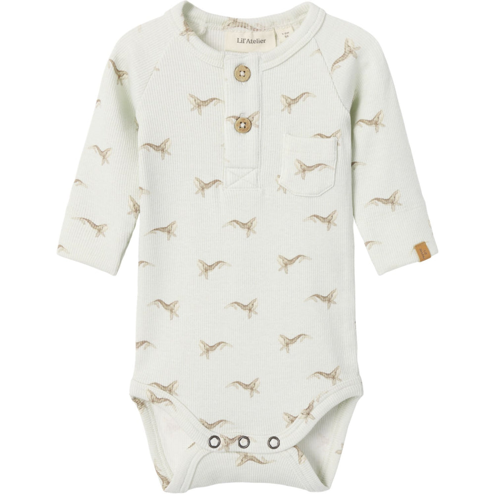 Dress your infant in the stylish and snug Lil'Atelier Murmur Whale Nbmgavo Elm Ls Slim Body. Crafted from premium jersey, this bodysuit offers a gentle touch with stretchable comfort, ensuring your child moves freely. Featuring a charming grandad neck and practical long sleeves, it combines ease with elegance. Aesthetic details like a subtle all-over print and a cute chest pocket enhance the appeal, while button and press stud fastenings ensure dressing is effortless. Notably safe, keep in mind to keep this garment away from fire. Ideal for both sleep and play, this bodysuit blends style, comfort, and practicality, making it a fabulous addition to your child's wardrobe.