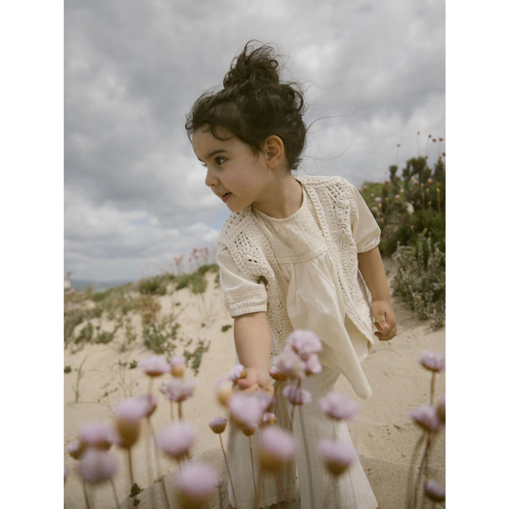Discover the charm of our Lil'Atelier Turtledove Daisy Loose Shirt, designed to blend timeless style with everyday comfort for your child. Crafted from woven fabric with a criss-cross pattern, this top features a round neck and short sleeves with elasticated cuffs, ensuring a gentle fit. The button and loop fastening adds ease while the intricate lace detail offers a touch of elegance. Available in a classic, loose fit, it provides ample freedom for movement, making it perfect for playtime or any stylish occasion. Easy to care for, durable, and wonderfully versatile, this shirt will keep your little one looking and feeling great.