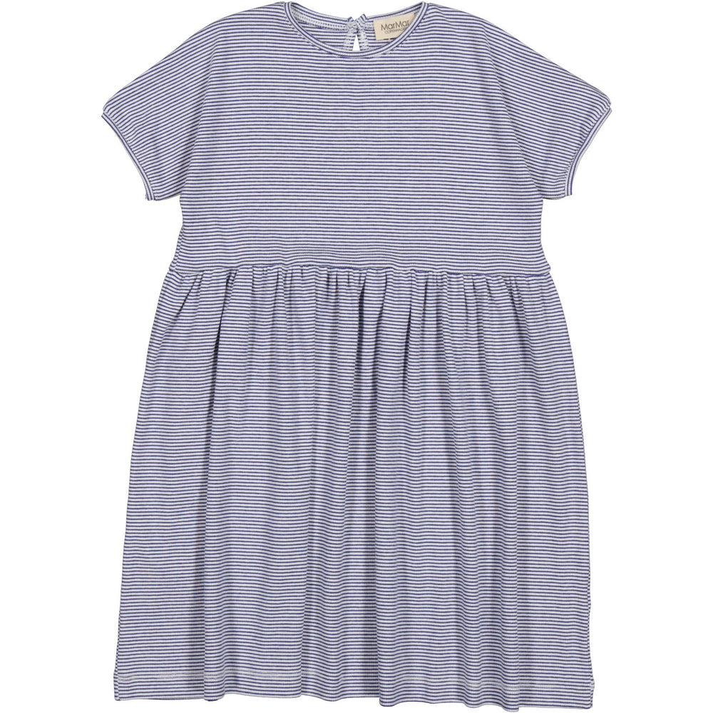 Are you looking for the perfect summer dress for your child? The MarMar Dioa dress in modal fine rib with blue stripes is a must-have! This charming short-sleeved dress has an elegant skirt and practical button closure at the back. With its comfortable fit that goes just above the knee and the narrow ribbed knit with elastane, the dress is both stretchy and breathable. The quality is topnotch, so colors and shape are retained even after many washes. And don't worry, it's Oeko-tex® certified, free of harmful chemicals. A stylish and safe choice for play and partying!