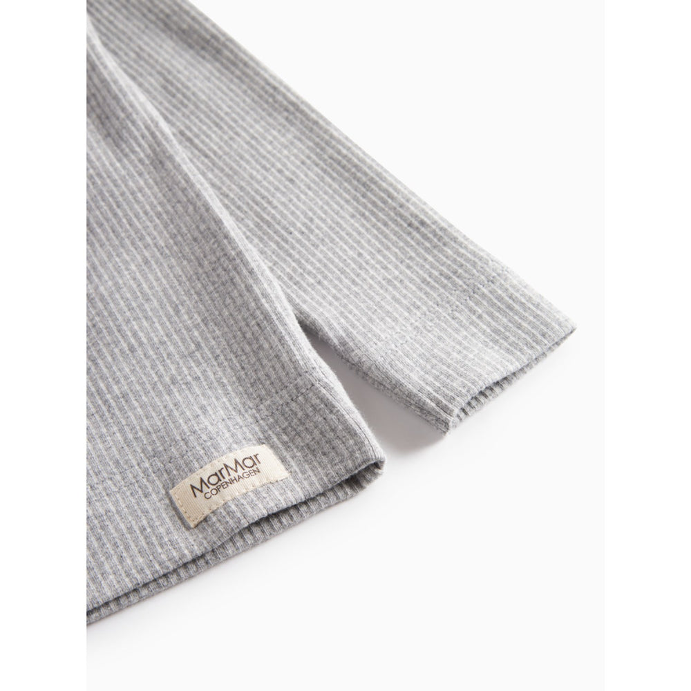Introducing the MarMar Modal Melange Light Grey Melange Blouse, perfect for your little one's wardrobe. Crafted from a soft modal blend, this long-sleeved t-shirt features a practical button design, making it easy to dress. The light grey melange pattern adds a touch of elegance and versatility. Ideal for daily wear, this blouse combines style, comfort, and ease of care. An excellent choice for both casual and special occasions, ensuring your child looks charming while feeling comfortable all day long. Materials: 47% Modal, 48% Cotton (Organic), 5% Elastane Washing instructions: Wash - Machine wash 40°C , Bleach - Do not bleach , Drying - Do not tumble dry, Ironing - medium, Dry Clean - Dry clean possible Extra: Rib knitted in melange with elastane, Soft, stretchy and comfortable to wear, High quality that keeps shape and color, Wear it with everything, Oeko-tex® - Tested for harmful chemicals, Modal styles is a favorit since 2008 and is lanched in new colors each season