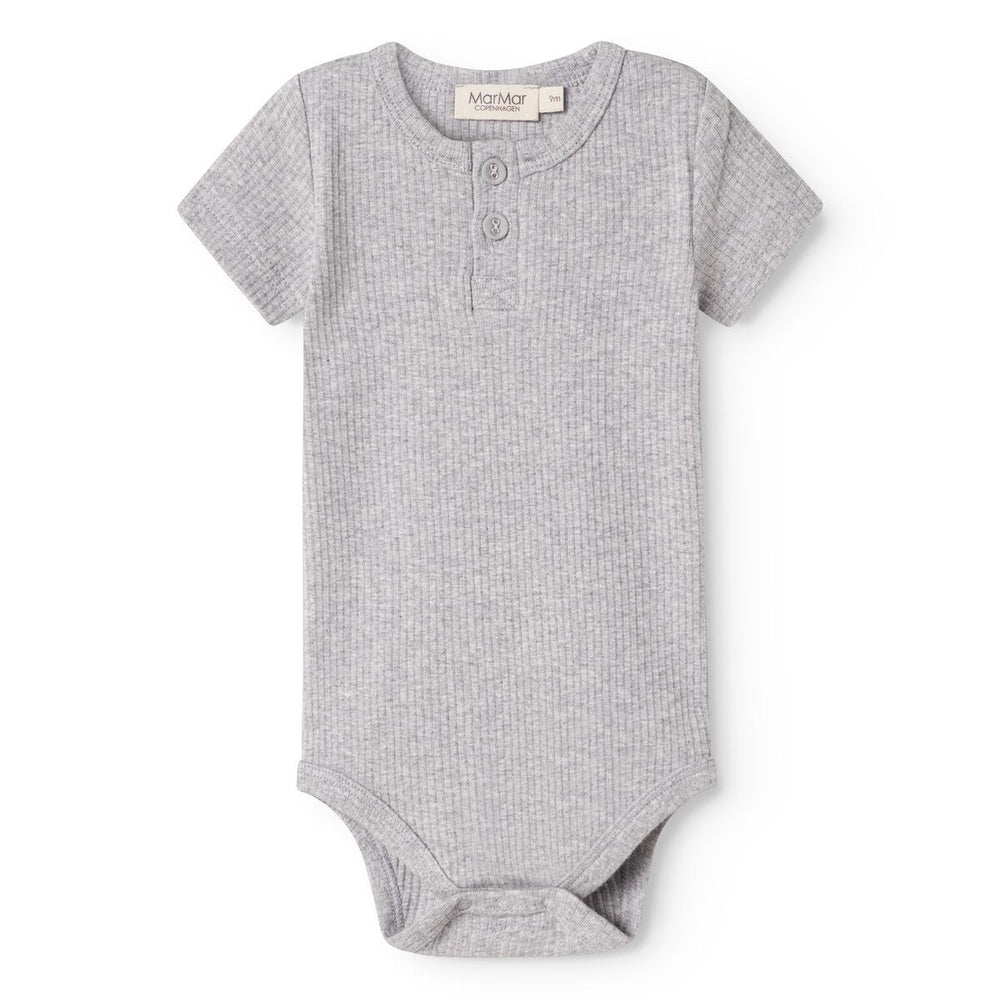 Introducing the MarMar Modal Melange Light Grey Melange Body SS, a short-sleeved bodysuit perfect for your little one. Crafted from soft modal blend fabric and designed in a soothing light grey melange, this piece combines style and function effortlessly. Featuring easy-to-use snap buttons at the crotch for quick changes, its comfortable fit ensures your child feels great all day, while the durable design stays fresh even after frequent washing. A must-have in your child's wardrobe, this bodysuit mixes practicality with modern style seamlessly. Materials: 47% Modal, 48% Cotton (Organic), 5% Elastane Washing instructions: Wash - Machine wash 40°C , Bleach - Do not bleach , Drying - Do not tumble dry, Ironing - medium, Dry Clean - Dry clean possible Extra: Rib knitted in melange with elastane, Soft, stretchy and comfortable to wear, High quality that keeps shape and color, Wear it with everything, Oeko-tex® - Tested for harmful chemicals, Modal styles is a favorit since 2008 and is lanched in new colors each season