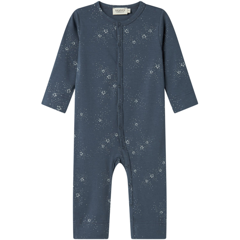 Discover the comfort and style of the MarMar Modal Smooth Print Starry Night Ruka Onesie, perfect for your little one. Crafted from soft, stretchy jersey with elastane, this onesie ensures breathability and maintains its shape and color through wear and wash. Its delightful starry night pattern captivates the eye, while the Oeko-tex® certification guarantees it's free from harmful chemicals. Ideal for both sleep and play, this onesie combines functionality with a charming design, ensuring your child looks adorable while staying comfy. Materials: 47% Modal 48% Cotton (Organic) 5% Elastane Washing instructions: Wash - Machine wash 40°C , Bleach - Do not bleach , Drying - Do not tumble dry, Ironing - medium, Dry Clean - Dry clean possible Certifications: OEKO-TEX, LENZING Modal, GOTS , SMETA Jersey with elastane Soft, stretchy and comfortable to wear Breathable quality Keeps shape and color Oeko-tex® - Tested for harmful chemicals