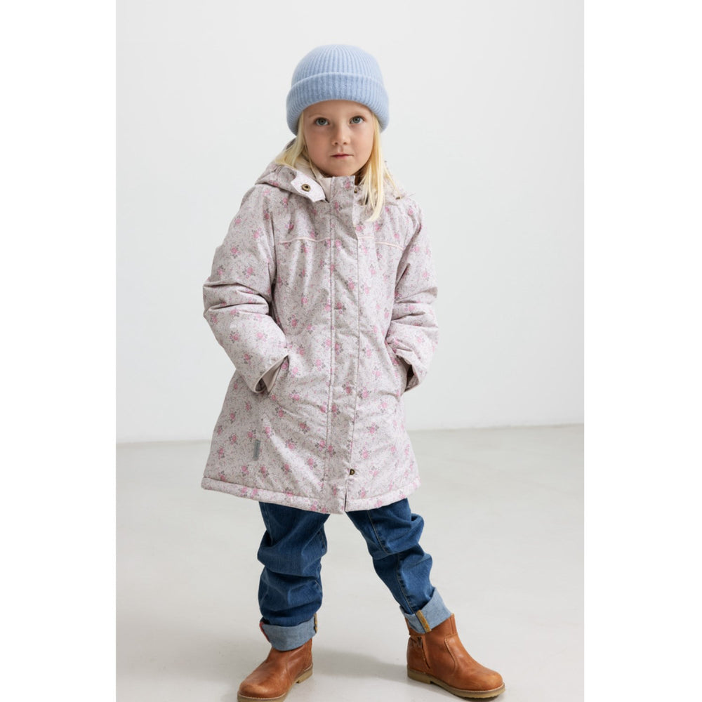 Discover the perfect winter companion for your child with the MarMar Tech. Outerwear Print Flowerbed Olga Jacket. This long, feminine jacket features an adjustable elastic waist for a comfortable fit, vibrant flowerbed print adding a splash of style, and a removable hood for versatile wear. Crafted with practicality in mind, it includes two side pockets for keeping little treasures safe. Ideal for chilly adventures, it combines functionality with a delightful design to keep your little one warm and stylish all season long. Materials: 100% Polyester (Recycled) Washing instructions: Wash - Machine wash 30°C gentle, Bleach - Do not bleach , Drying - Do not tumble dry, Ironing - Do not Iron, Dry Clean - Do not dry clean Certifications: OEKOTEX standard 100, GRS, Bionic Finish, Thermolite, BSCI Soft and warm winther outerwear Waterproof (water column pressure of 10,000mm) Breathable with 10,000gr / m2 / 24h Windproof Waterproof taped seams Durable material Insulation that ensures warm and temperate body temperature Reflective details in matching colors so the child is visible in traffic Ribbed edges in the sleeve and neck opening which makes it nice and comfortable to wear Fleece on the inside at the chin which makes it soft to wear The inner sleeve provides growth allowance and ends tightly and softly around the wrist Reinforced edging on sleeves to resist wear Wide elastic at the waist for a more feminine look The pockets have soft fleece lining Removeble hood Matching details YKK certified zipper Namelabel on the inside