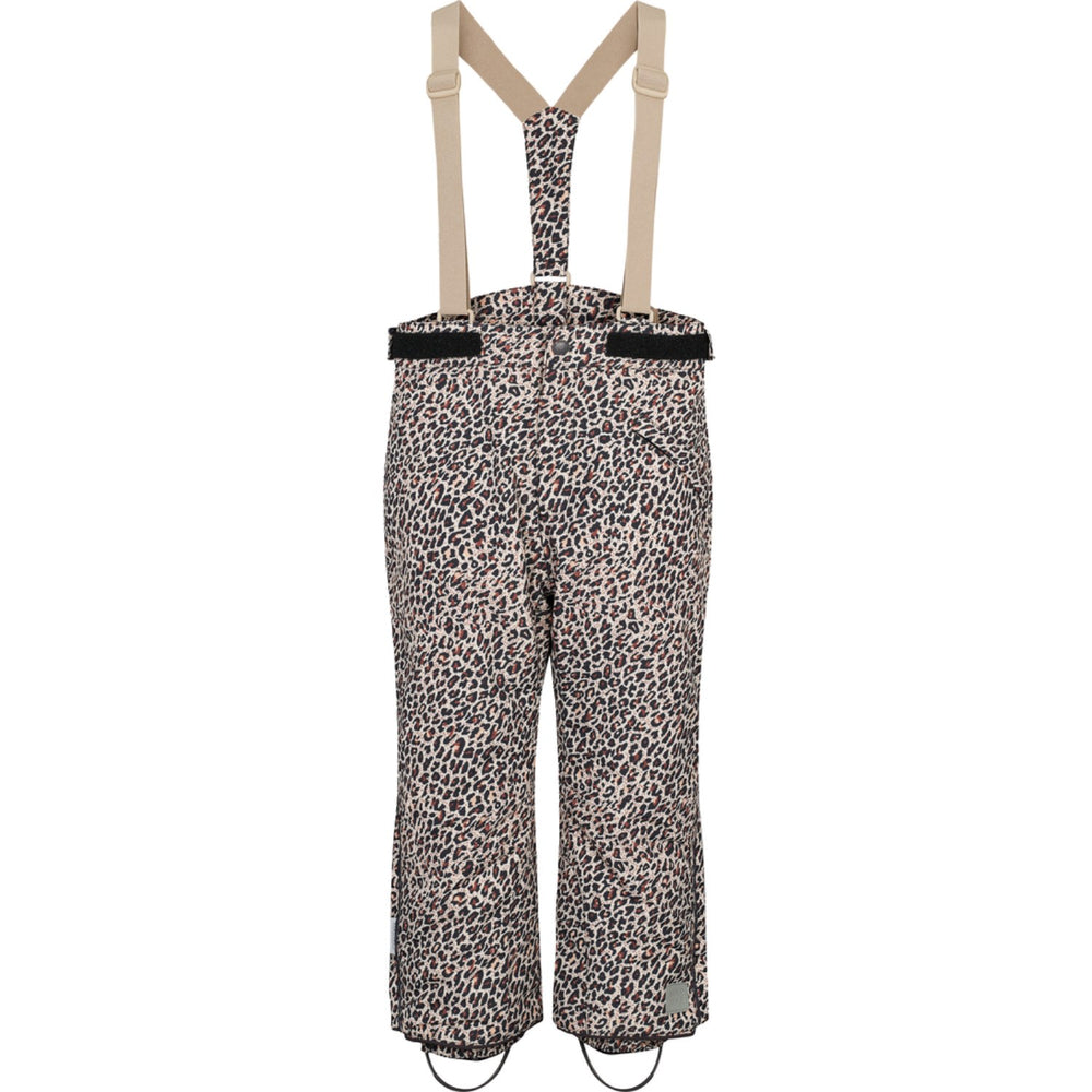 Discover the perfect blend of style and function with our MarMar Tech. Outdoor Pants in an eye-catching leopard print. Designed for active kids, these overalls are not only breathable and lightweight but also feature a smooth lining for easy dressing. Complete with a handy zipper pocket, and secure snap button closure, they are ideal for playful adventures outdoors. Easy to care for and durable, these pants ensure your child stays comfortable and stylish no matter the weather. Materials: 100% Polyester (Recycled) Washing instructions: Wash - Machine wash 30°C gentle, Bleach - Do not bleach , Drying - Do not tumble dry, Ironing - Do not Iron, Dry Clean - Do not dry clean Certifications: OKEO-TEX Standard 100 Class 2, Recycled Polyester, Bionic-Finish ECO, Thermolite, OEKO-TEX Standard 100 Soft and warm winther outerwear Waterproof (water column pressure of 10,000mm) Breathable with 10,000gr / m2 / 24h Windproof Waterproof taped seams Durable material Thermolite insulation is super light and fluffy, that ensures warm and temperate body temperature Reflective details in matching colors so the child is visible in traffic Removable and adjustable elastic suspenders Elastic and velcro straps at the waist so the pants can be adjusted The pockets have soft fleece lining Higher waistband at the back Trouser legs with snowcuff with elastic that gives a good grip on the boot Removable and adjustable rubber bootstraps under the feet up to size 7 years Concealed zipper can enlarge the trouser leg with an elastic so that the trousers fit over, for example, ski boots Matching details YKK certified zippers Namelabel on the inside
