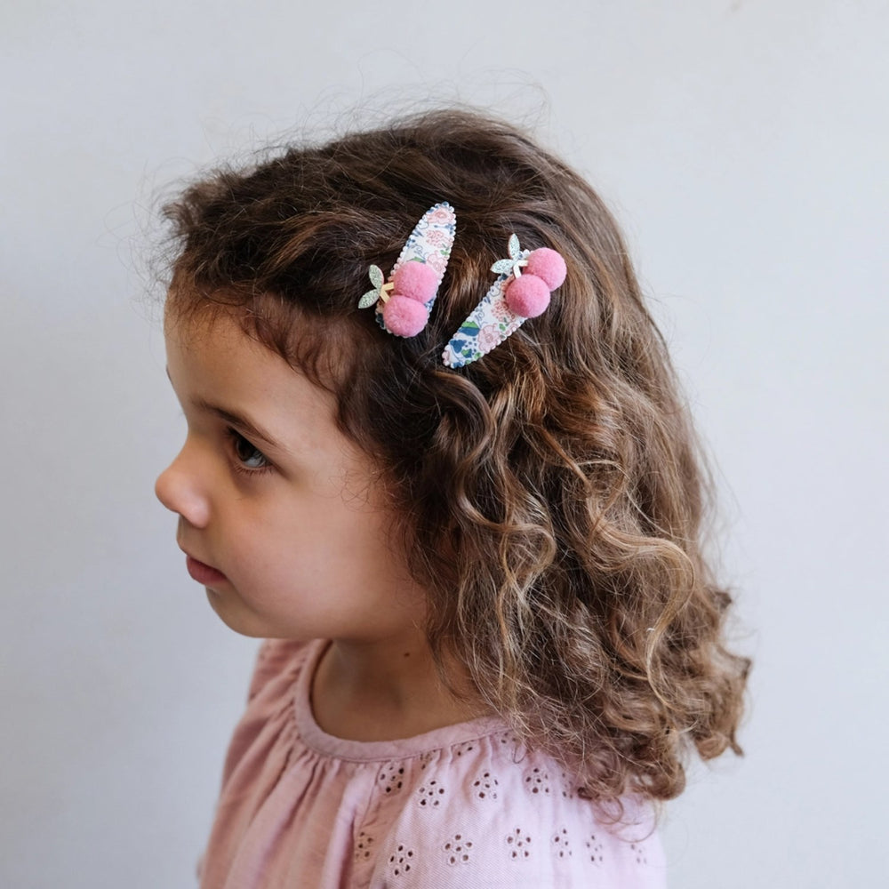 Mimi & Lula 2 Hair Clips - Floral Pom Pom Cherries Florence