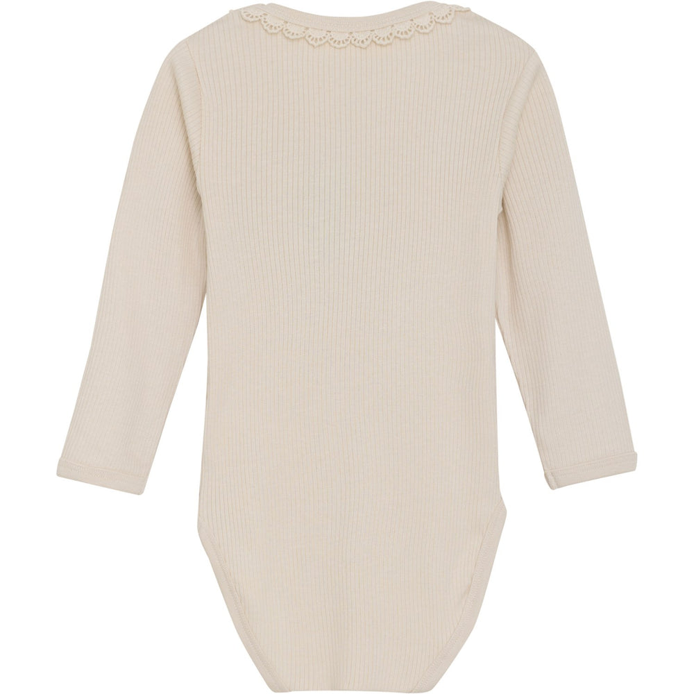 Introducing the Minymo Sandshell Body Ls Rib – a charming ribbed bodysuit with long sleeves perfect for your little one. Crafted from soft, cozy TENCEL fibers, this bodysuit ensures comfort and style with its pleasing texture and practical press studs for easy dressing. Its light sandshell hue and snug fit offer both elegance and ease of movement, making it a staple in any child's wardrobe. Ideal for daily wear, this durable and easy-care piece keeps your child looking adorable and feeling comfortable all day long.