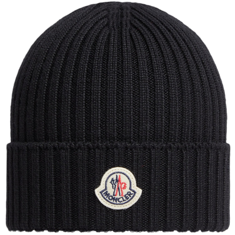 Gear up for chilly adventures with Moncler's cozy black beanie! Crafted in a comfy mid-weight knit, it's perfect for keeping little heads toasty on brisk walks and playful outings. Featuring a stylish logo patch, this woolen accessory blends fashion with function, ensuring your child stays warm and trendy all season long. Ideal for the miniature fashionista on the go! Materials: Base Fabric: 100% Virgin Wool Washing instructions: Remember to follow washing and user instructions